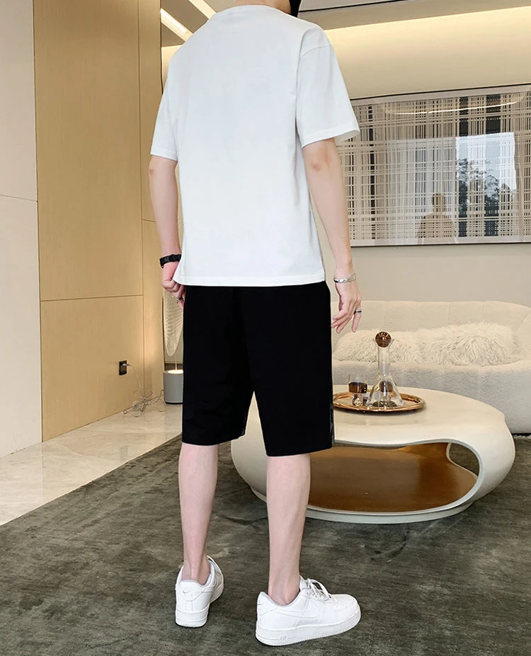 Threebooy T Shirt Shorts Sets Male Plain Regular Fit Fashion Top Essential High Quality New In Matching Sportswear Summer Clothes for Men