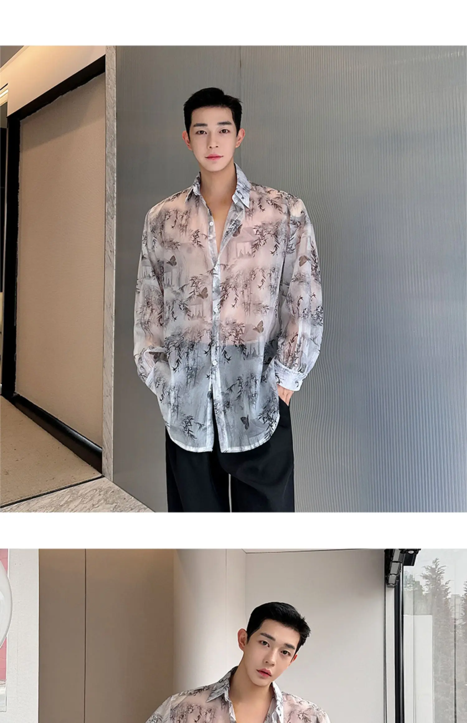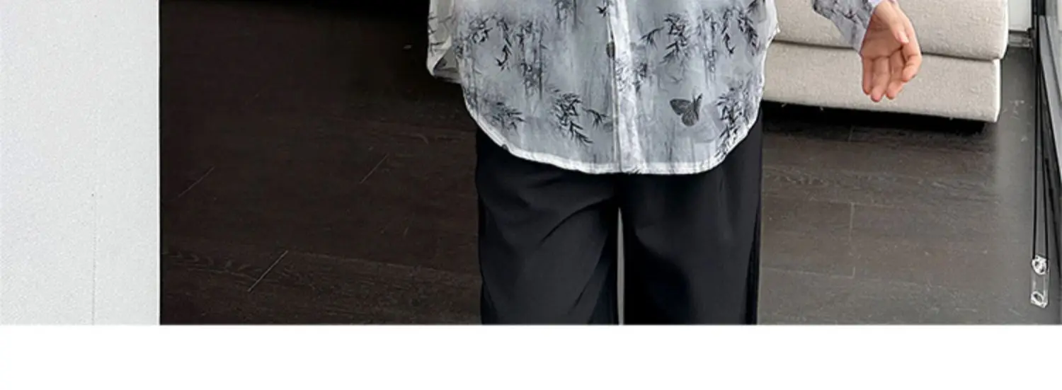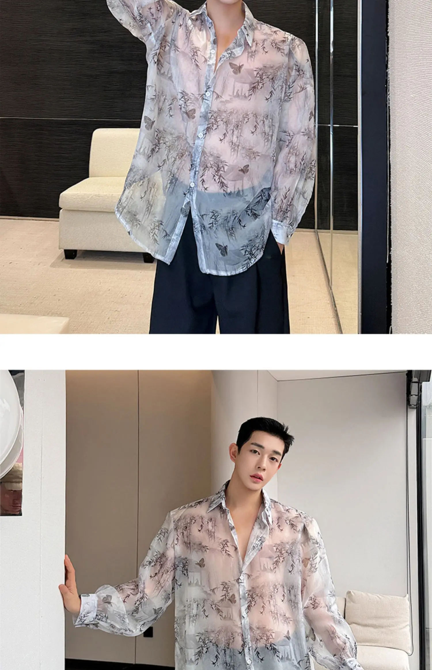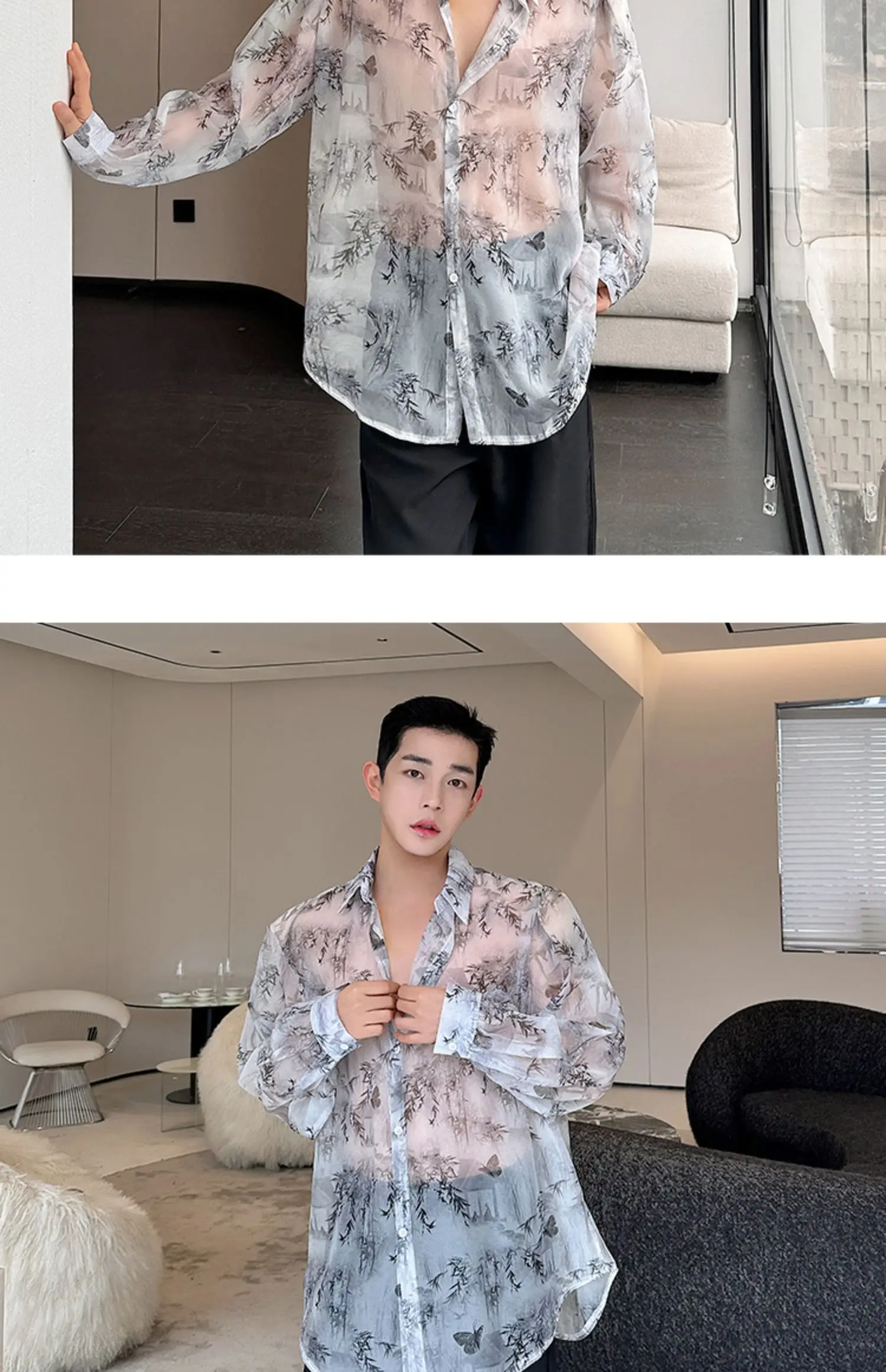 Threebooy Transparent Shirt Men Fashion Printed Harajuku Shirt Top Korean Loose Casual Clothes Sun-proof Daily All-match Summer Holiday