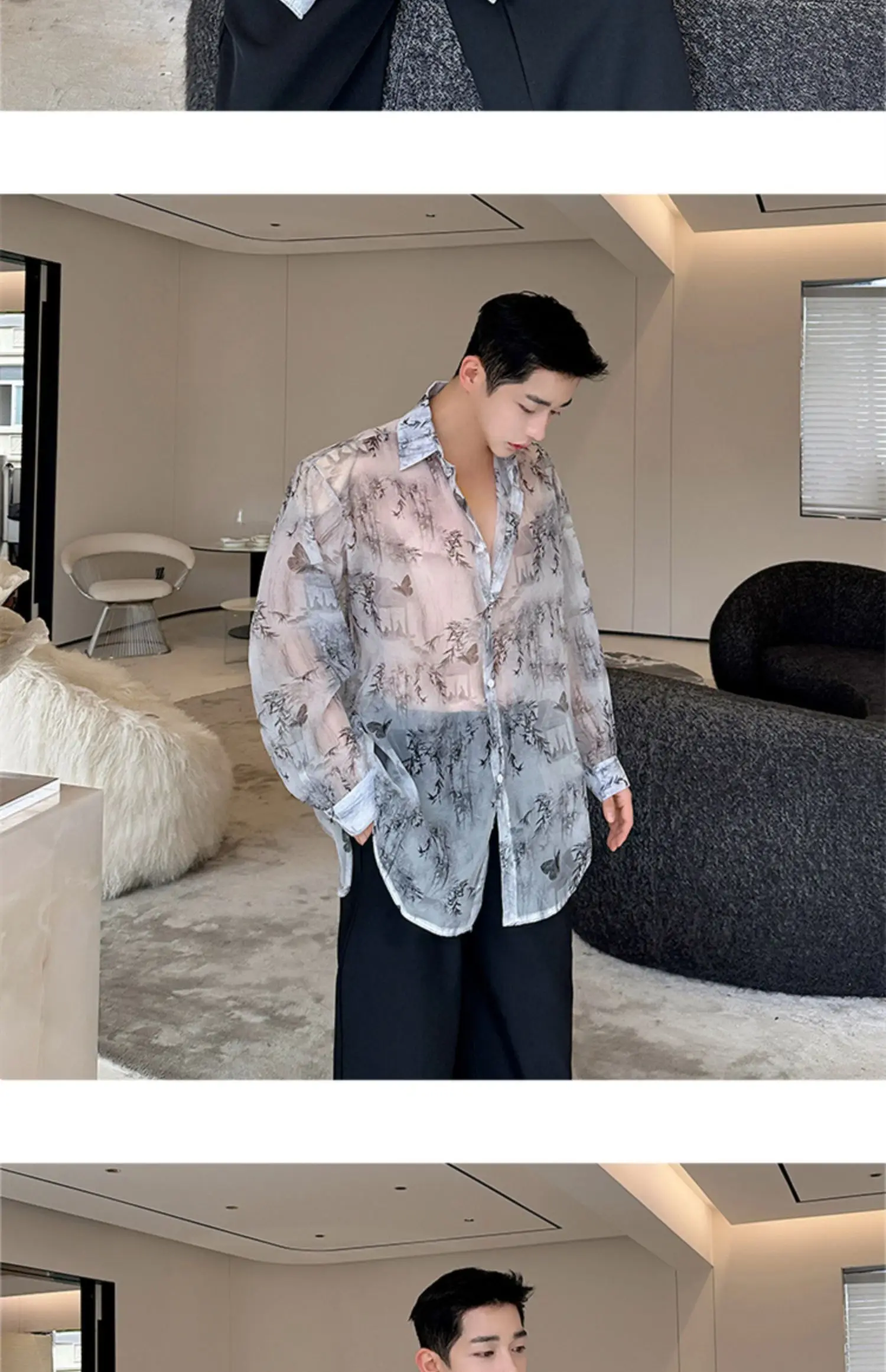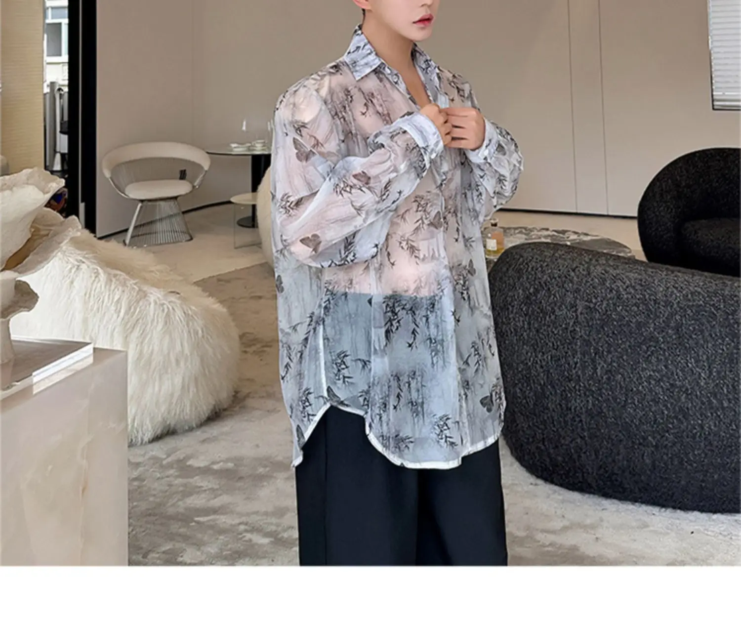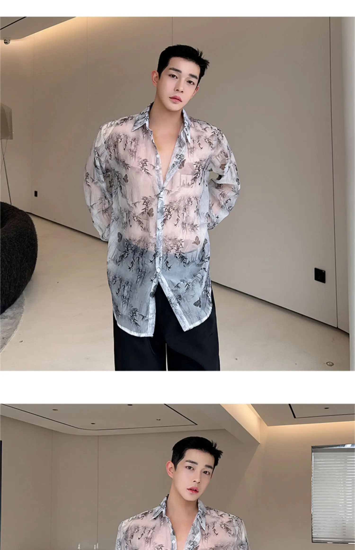 Threebooy Transparent Shirt Men Fashion Printed Harajuku Shirt Top Korean Loose Casual Clothes Sun-proof Daily All-match Summer Holiday