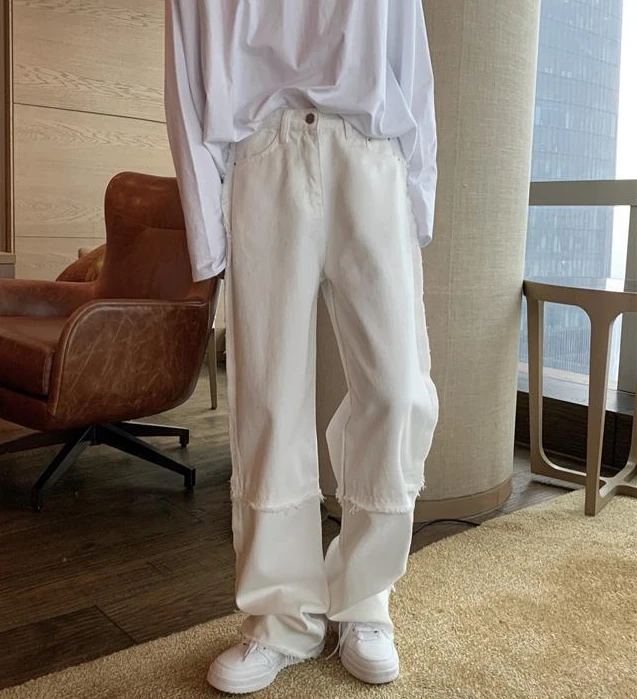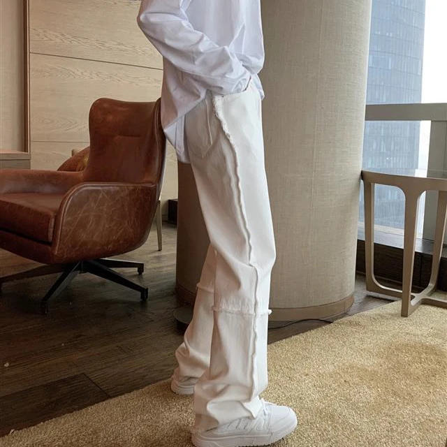 Threebooy Trousers Spliced Man Cowboy Pants Straight Men's Jeans White Aesthetic Loose Washed Original Regular Fashion Trend Summer