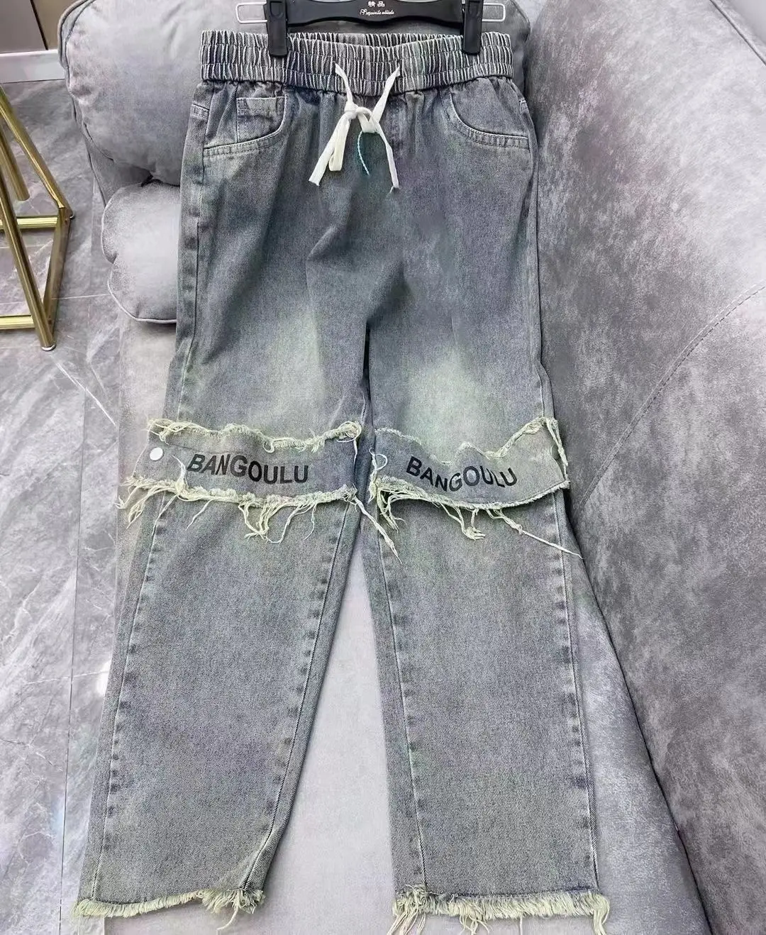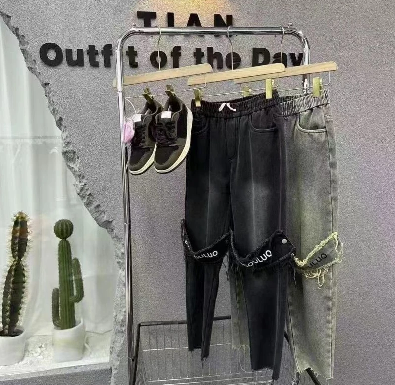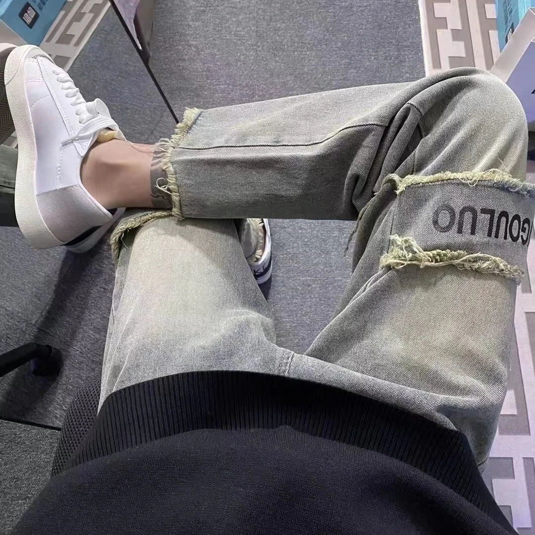 Threebooy Trousers Straight Black Man Cowboy Pants Patches Cropped Men's Jeans Wide Leg Retro Cotton Regular Washed Luxury Vintage New In
