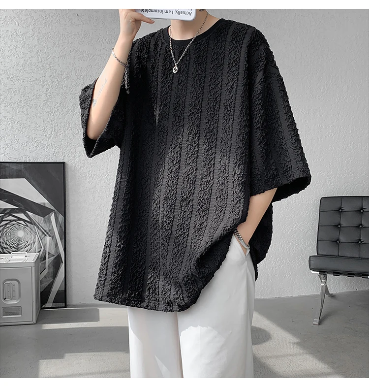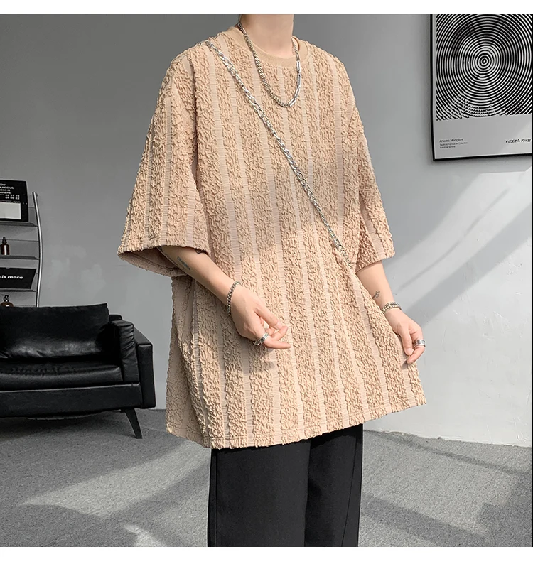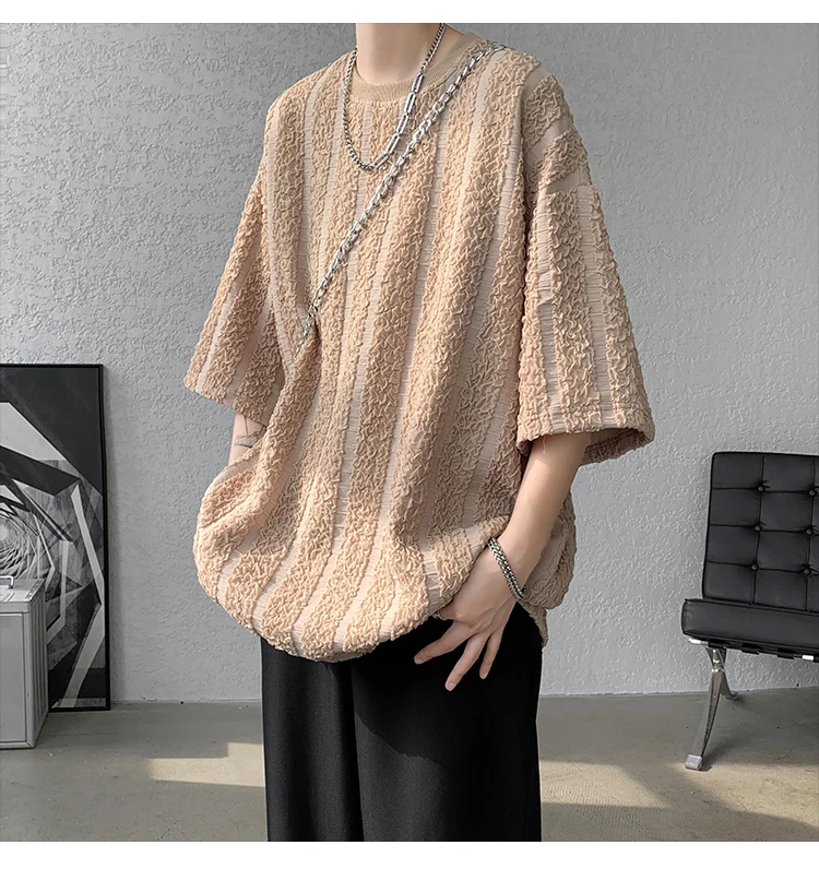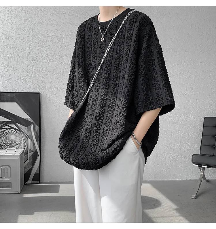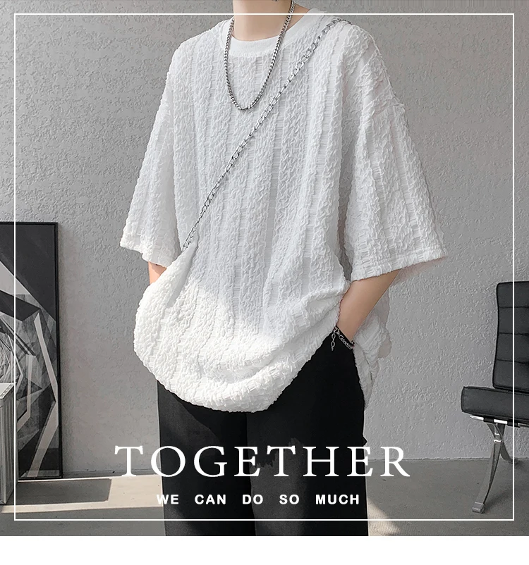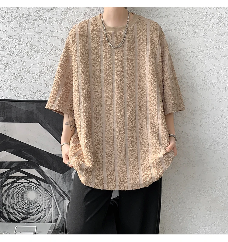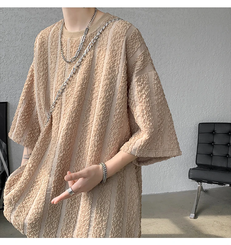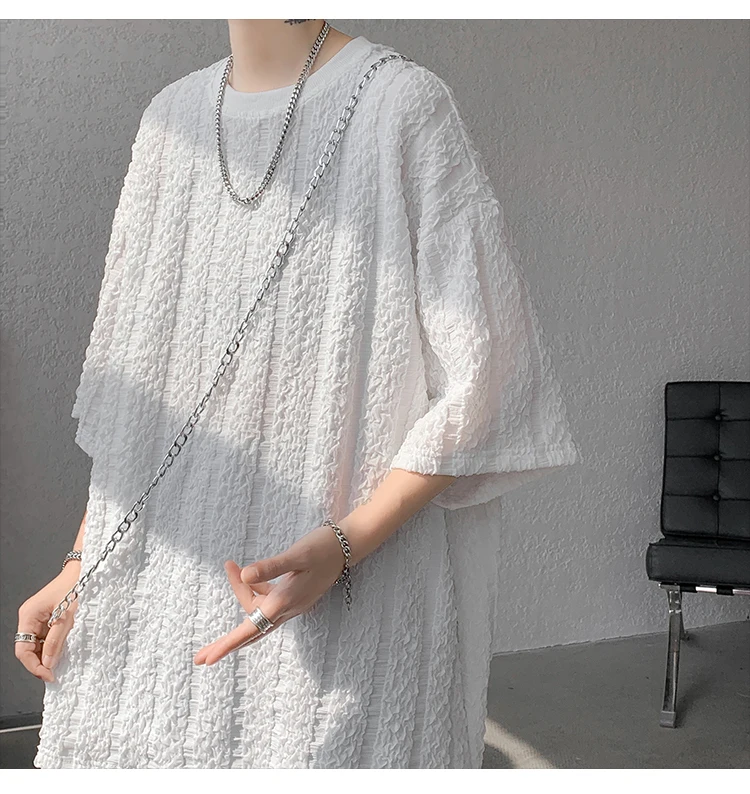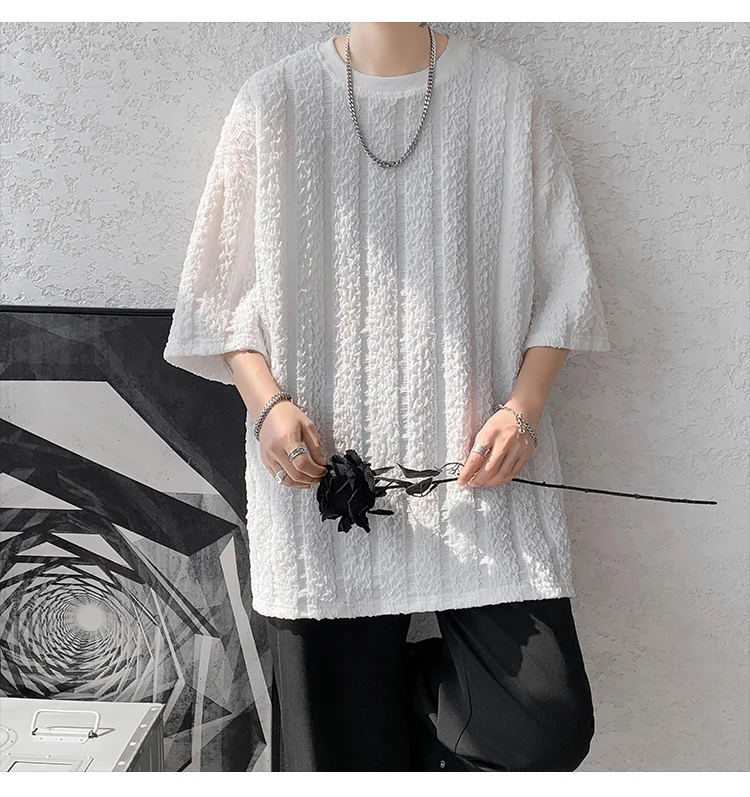 Threebooy Vertical Stripe Pleated T Shirt For Men Summer Short Sleeve Plain T-Shirt Fashion TShirts Round Collar Sports Top Tees White