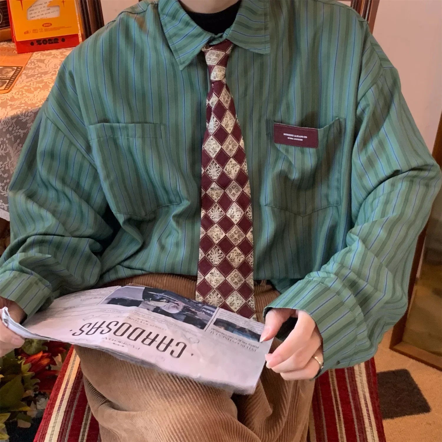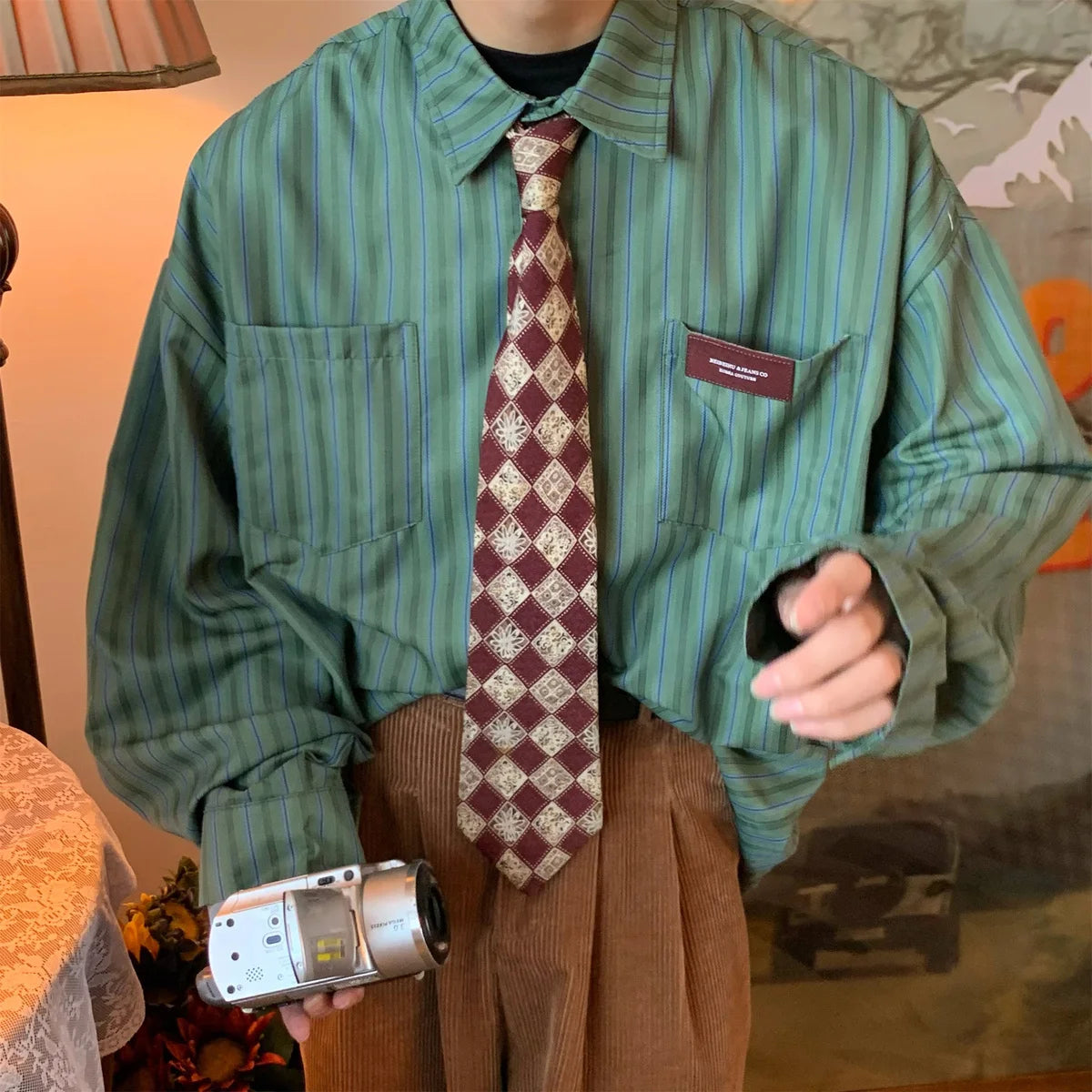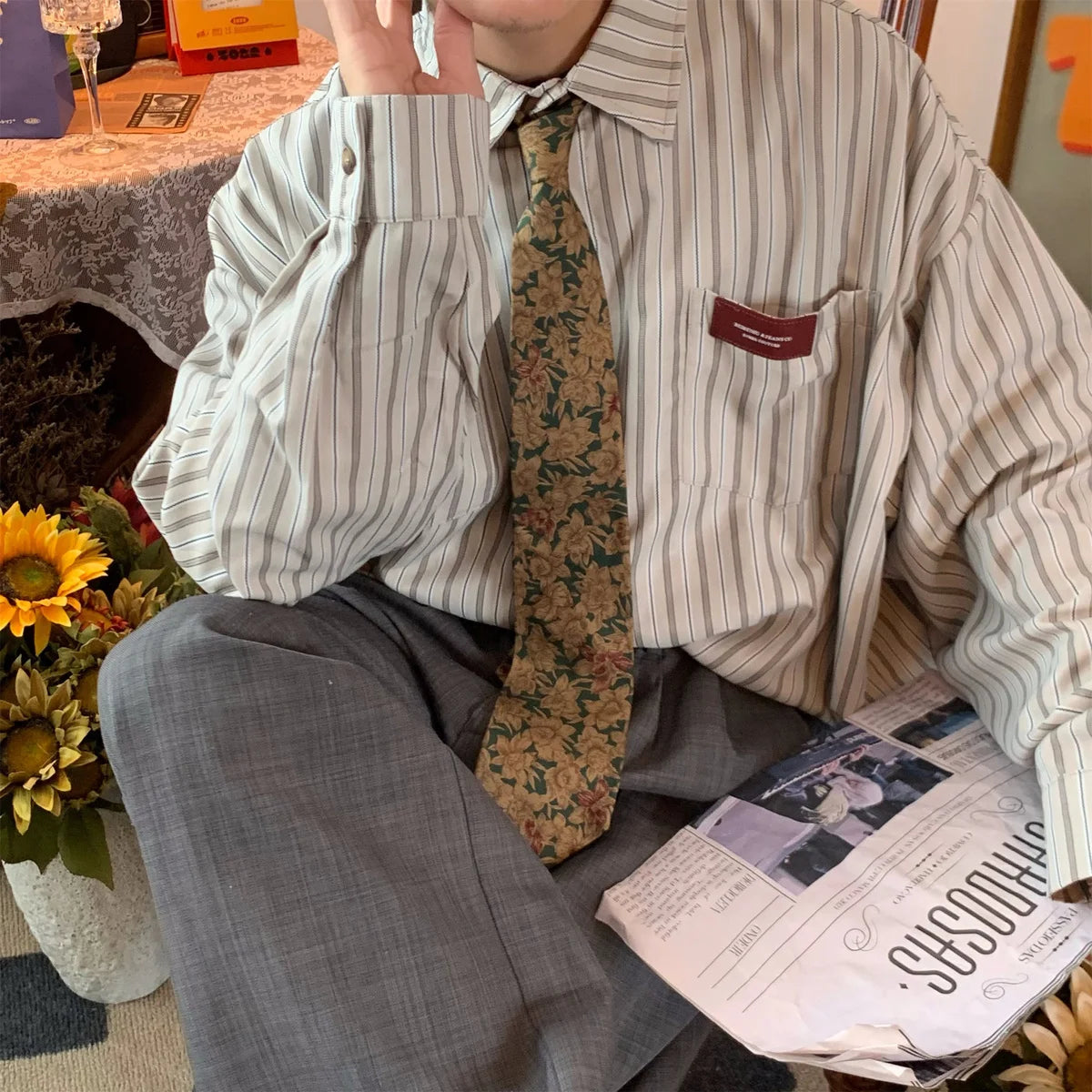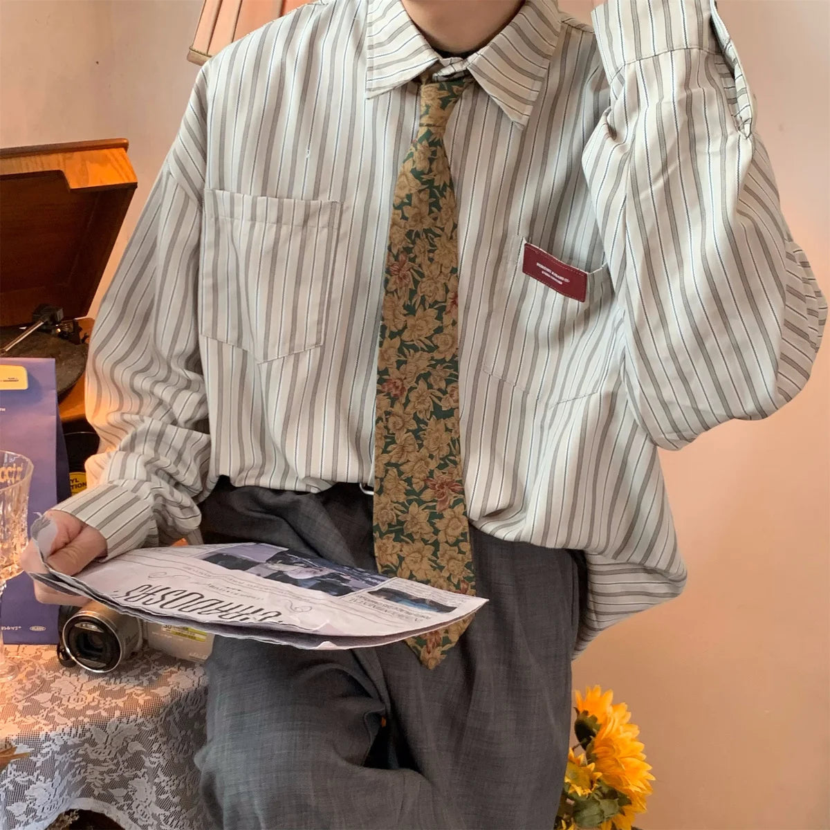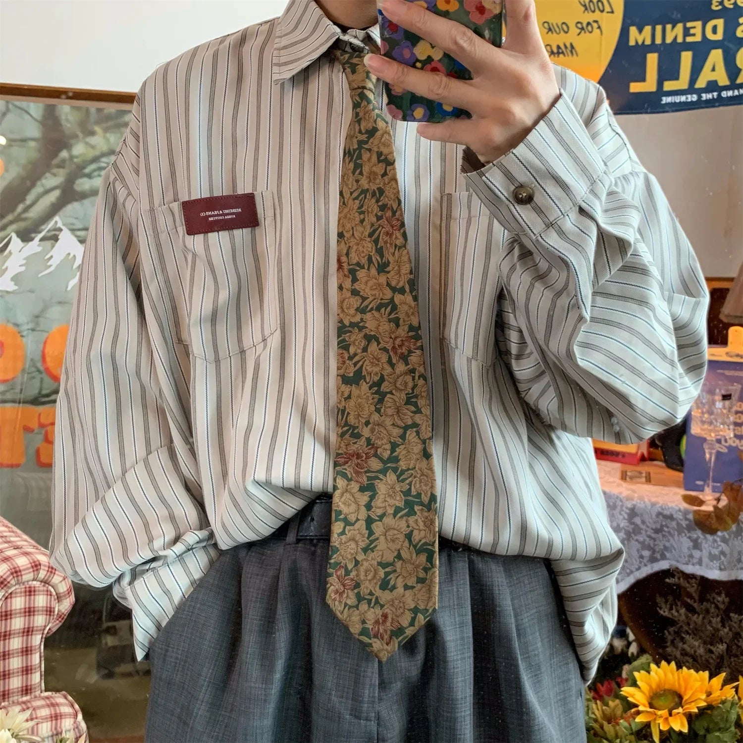 Threebooy Vintage High Striped Shirt Jacket Men's Loose Ins Long Sleeved Top Tops Shirts for Men Clothing Camisas y Blusa