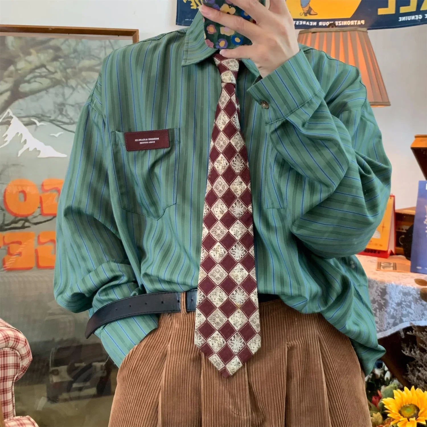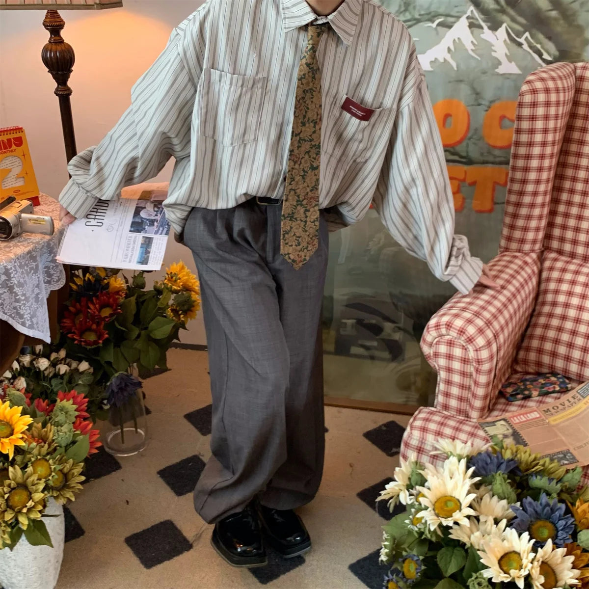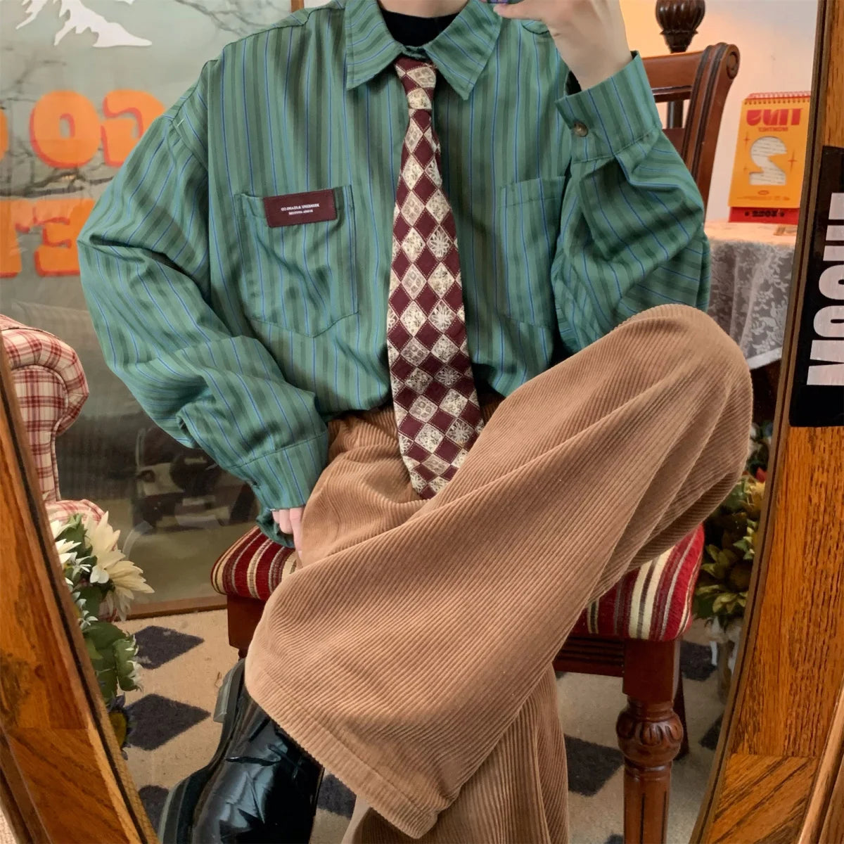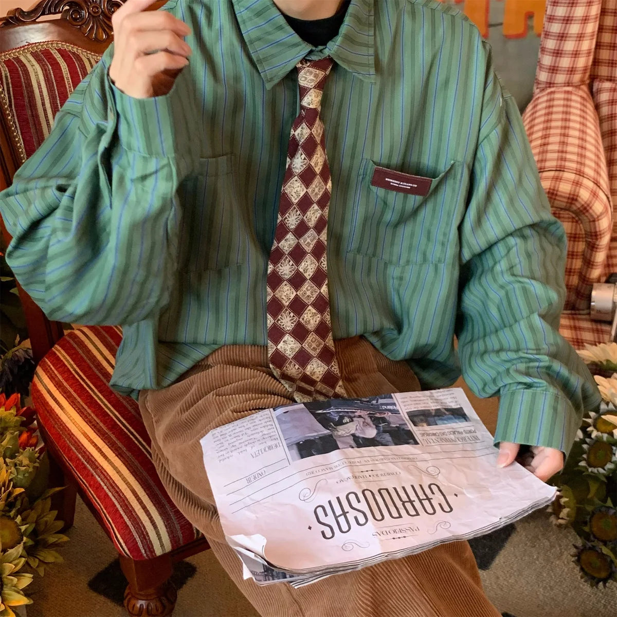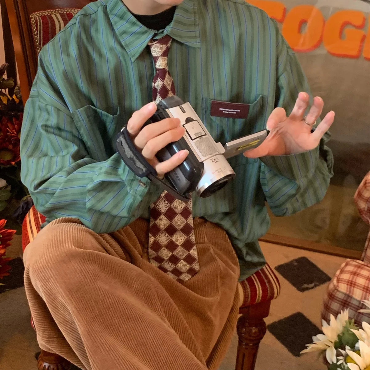 Threebooy Vintage High Striped Shirt Jacket Men's Loose Ins Long Sleeved Top Tops Shirts for Men Clothing Camisas y Blusa