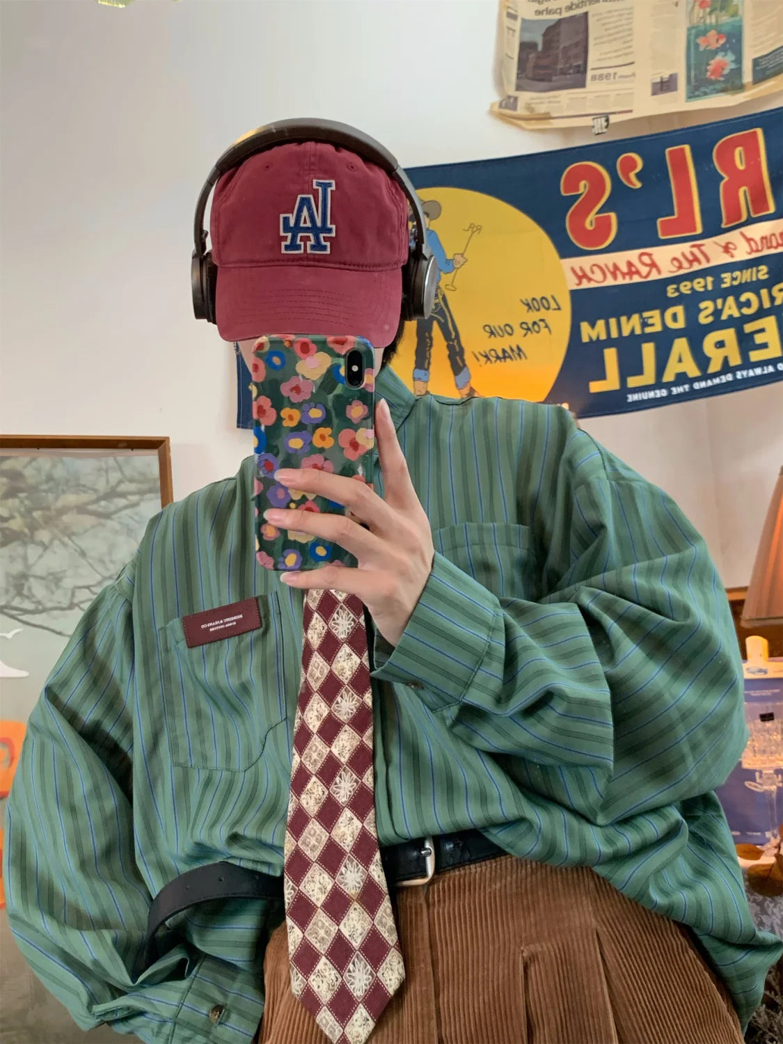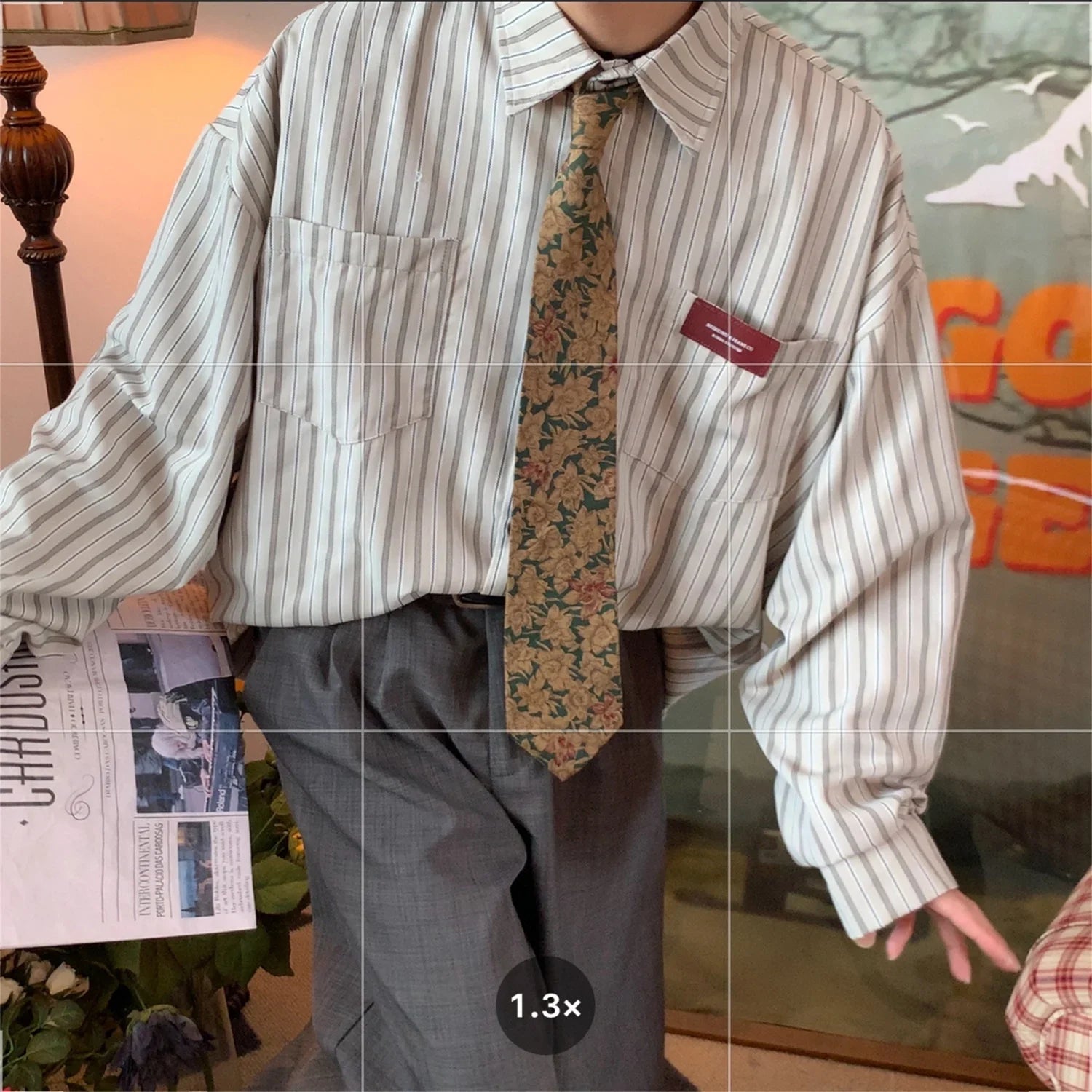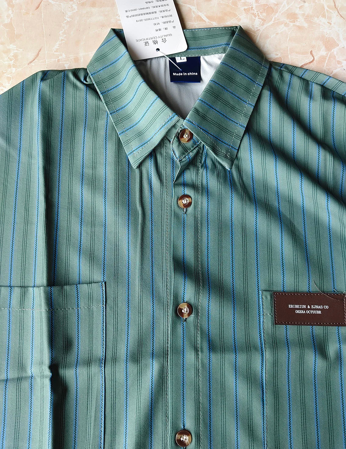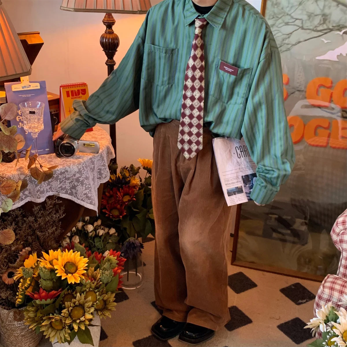 Threebooy Vintage High Striped Shirt Jacket Men's Loose Ins Long Sleeved Top Tops Shirts for Men Clothing Camisas y Blusa