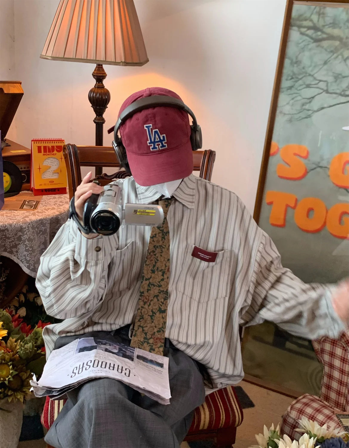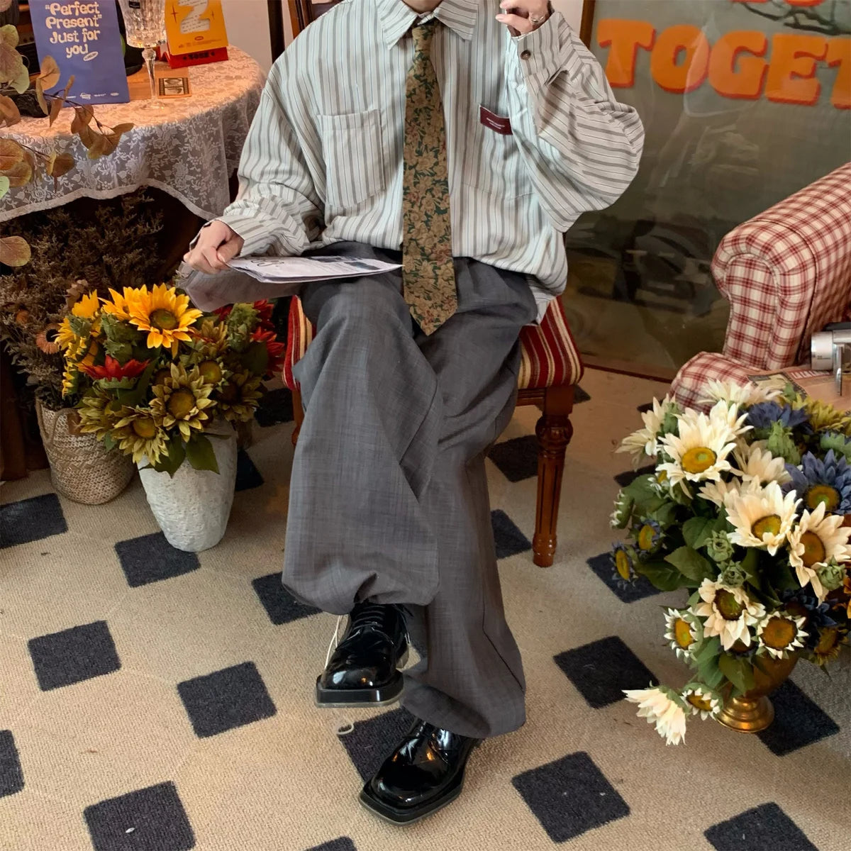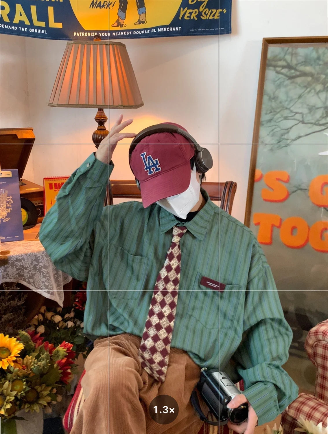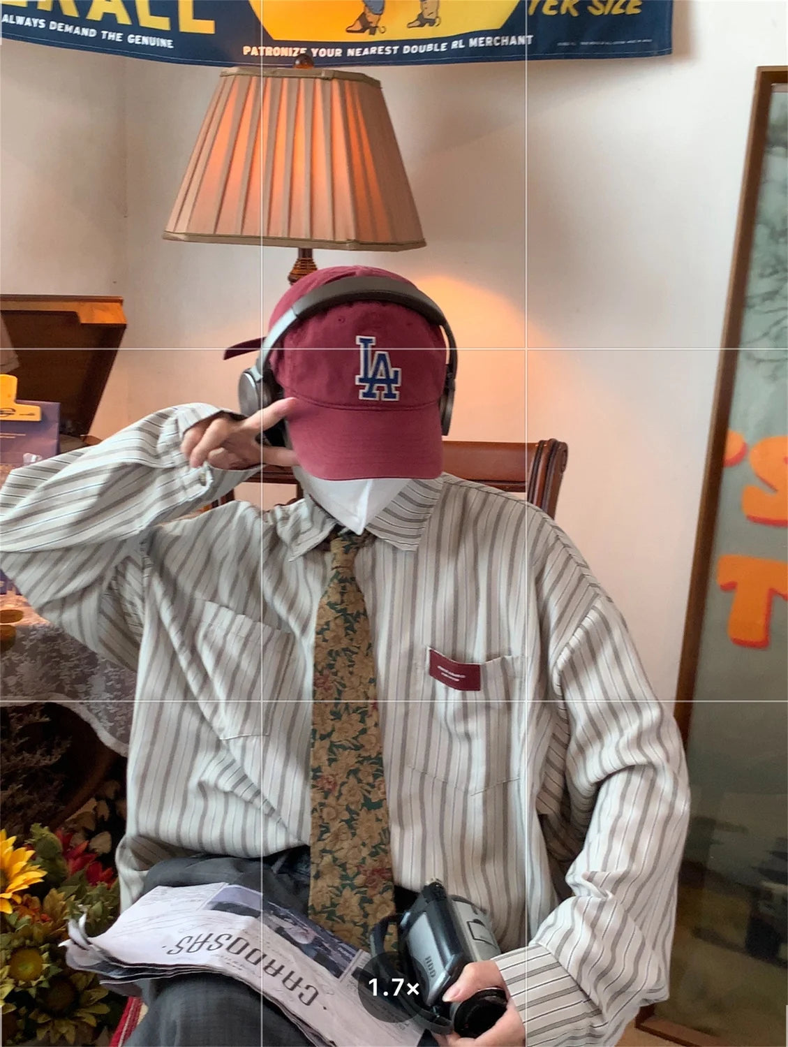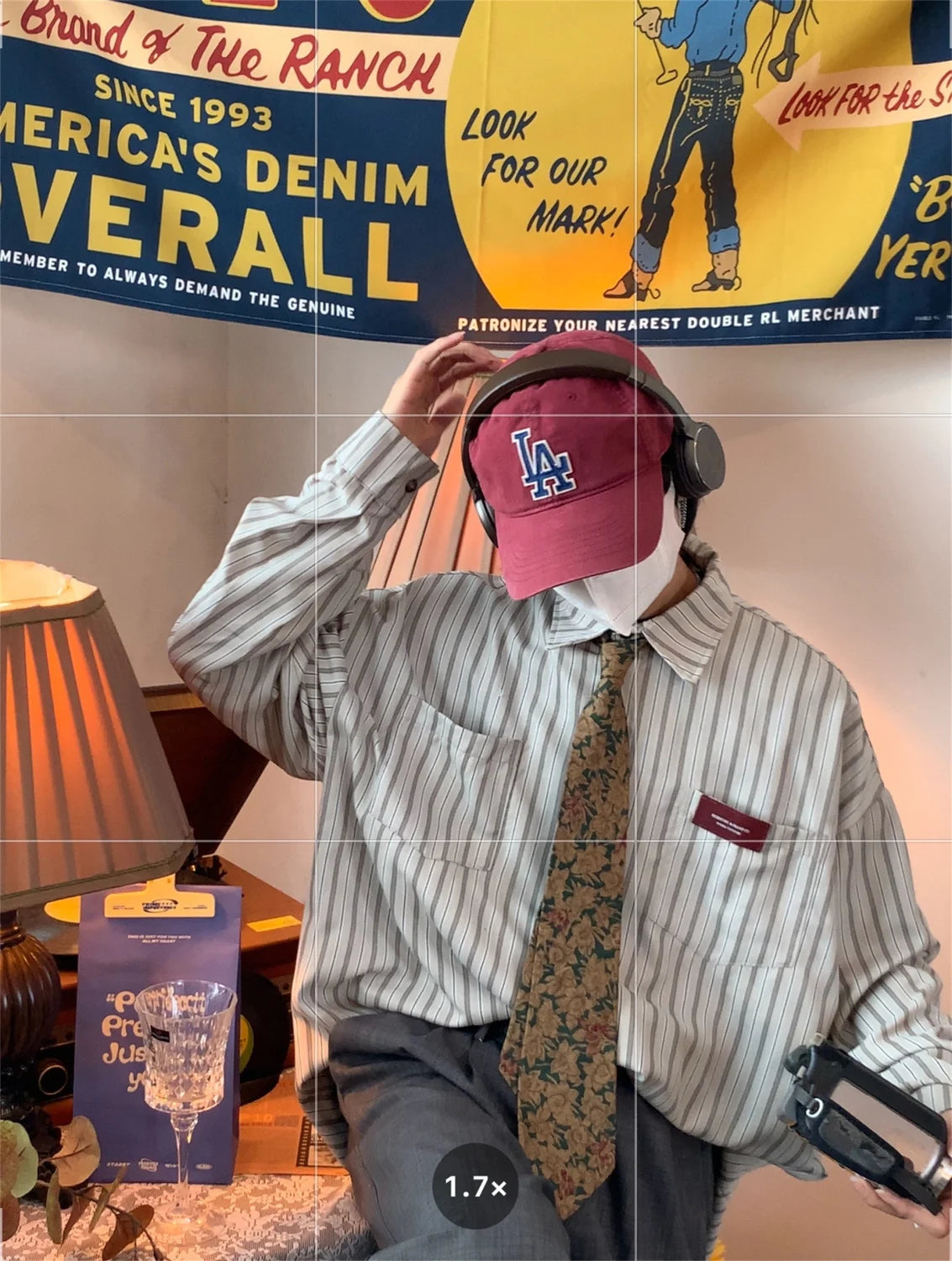 Threebooy Vintage High Striped Shirt Jacket Men's Loose Ins Long Sleeved Top Tops Shirts for Men Clothing Camisas y Blusa