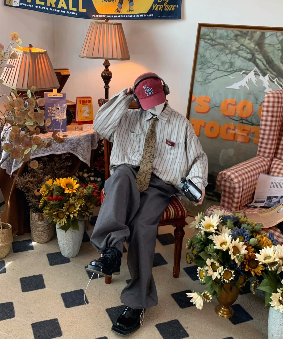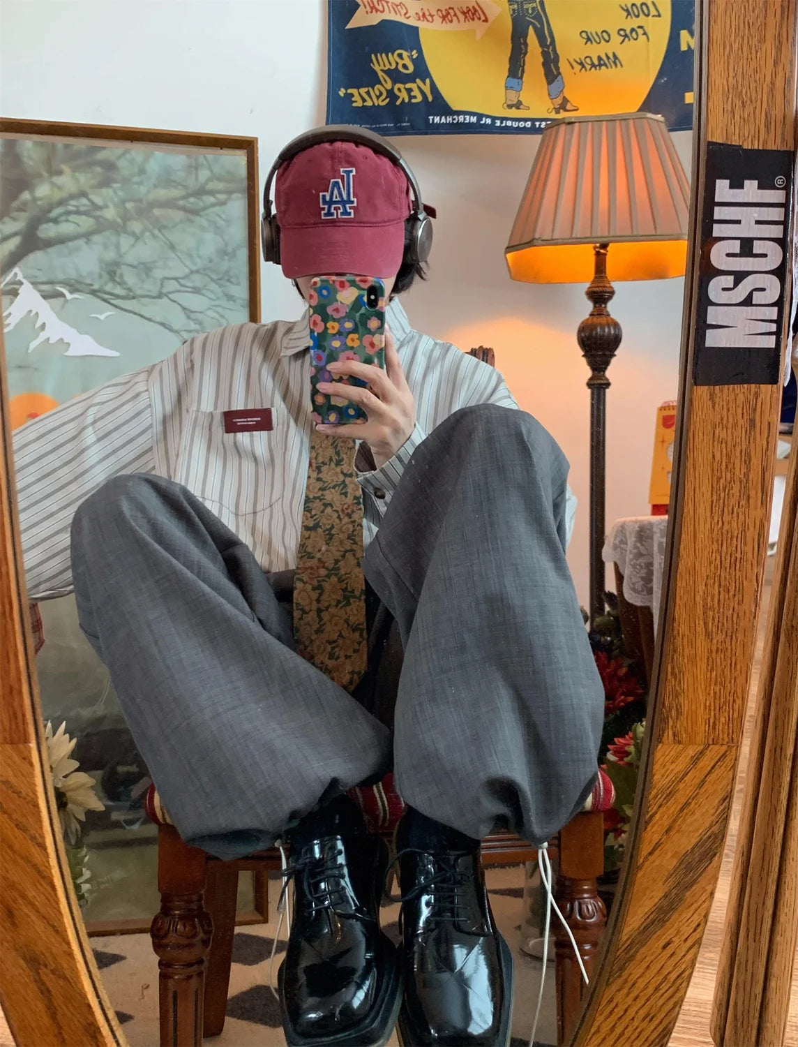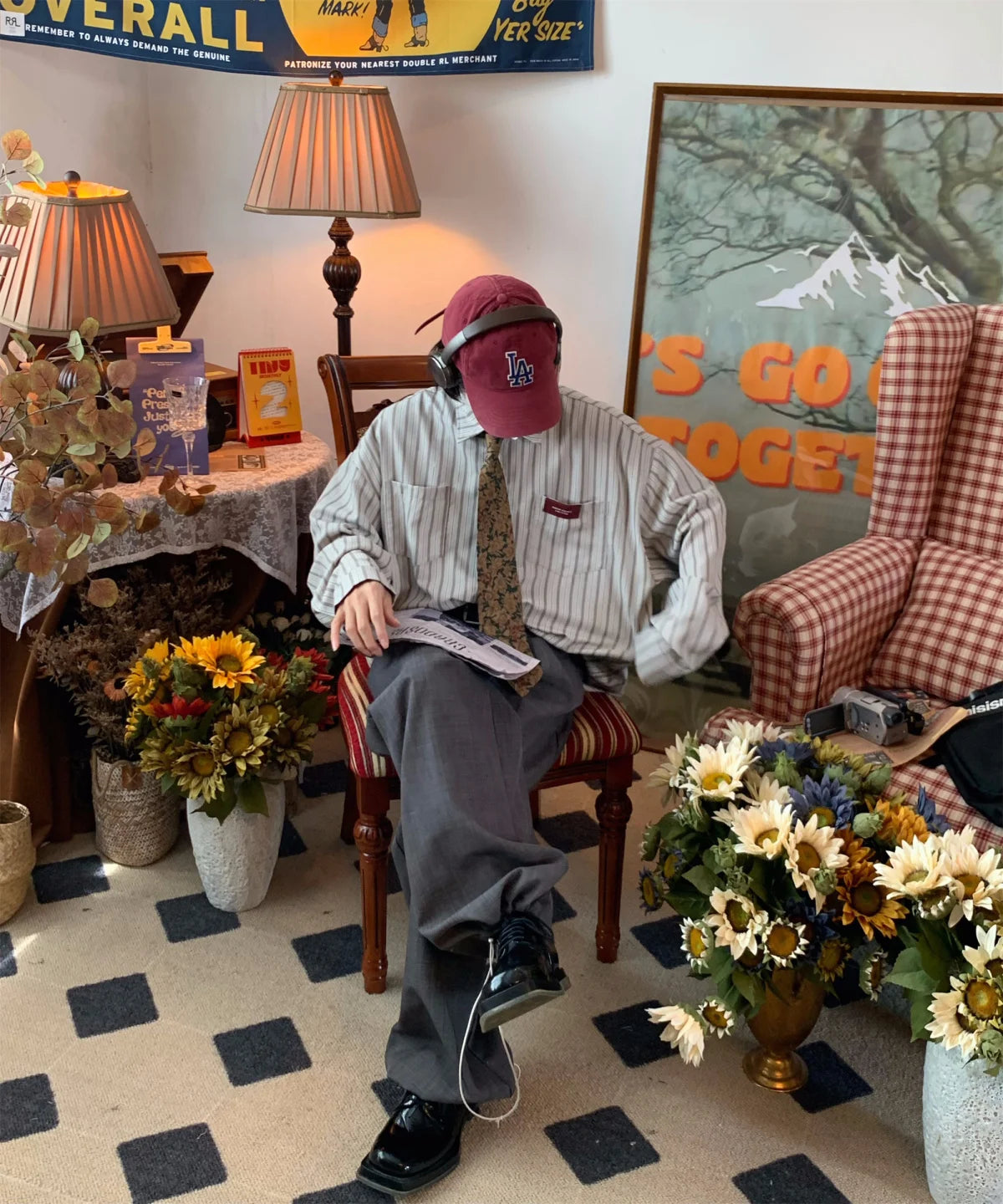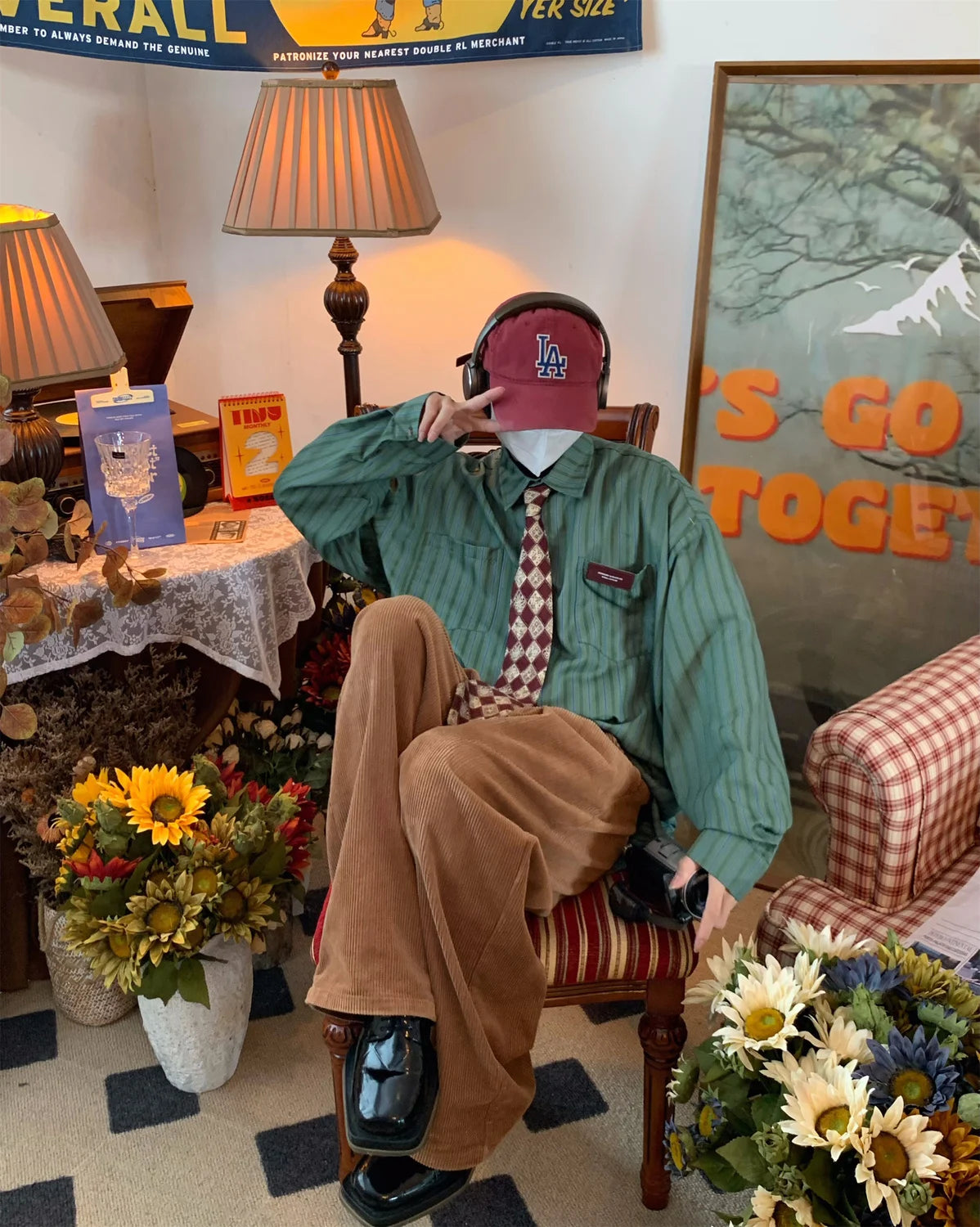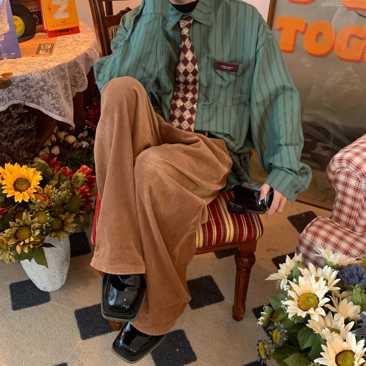 Threebooy Vintage High Striped Shirt Jacket Men's Loose Ins Long Sleeved Top Tops Shirts for Men Clothing Camisas y Blusa