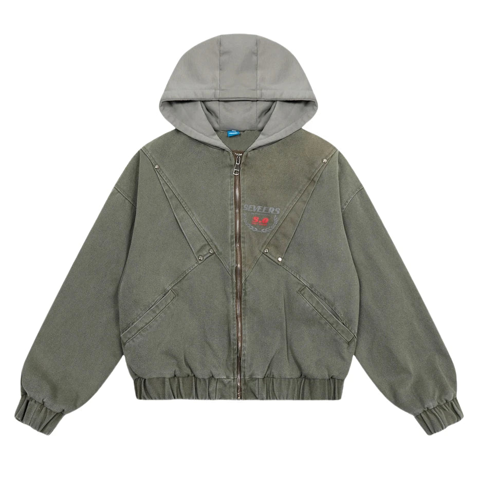 Threebooy Vintage Splicing Hooded Jackets Mens Streetwear Punk Y2k Canvas Cargo Coats Harajuku Loose Casual Hip Hop Washed Jackets Male