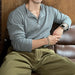 Threebooy Vintage Trend Fashion Men T-Shirts Spring Autumn New Solid O-Neck Button Waffler Elastic Quick Dry Casual Loose Long Sleeve Tops