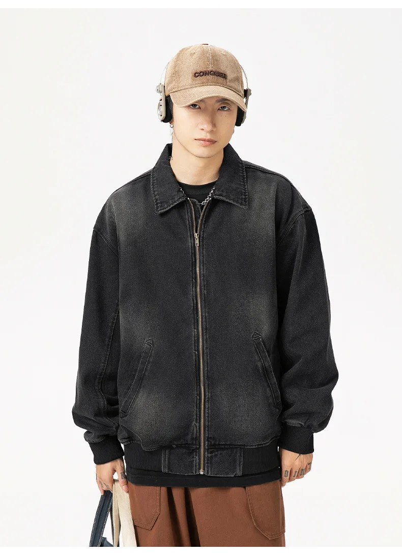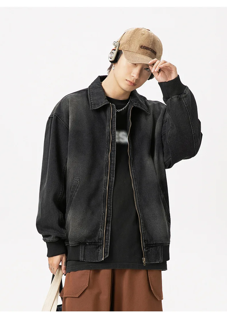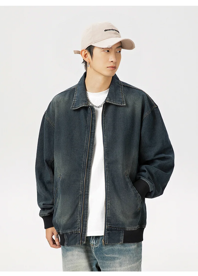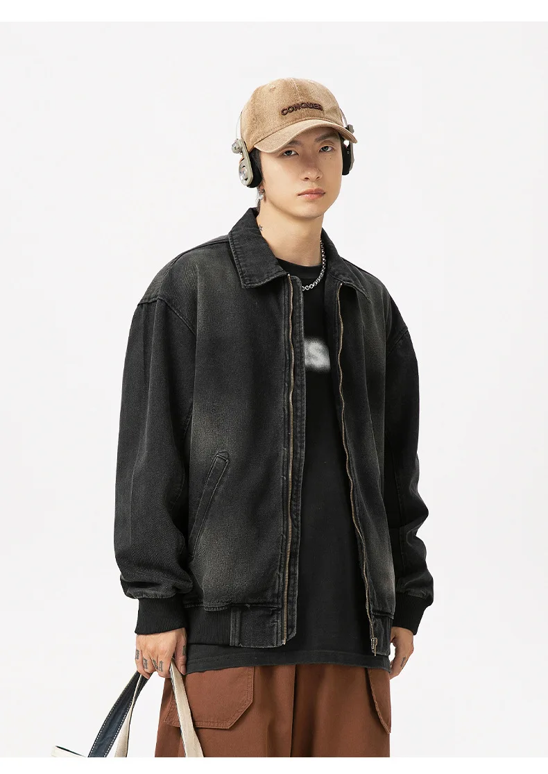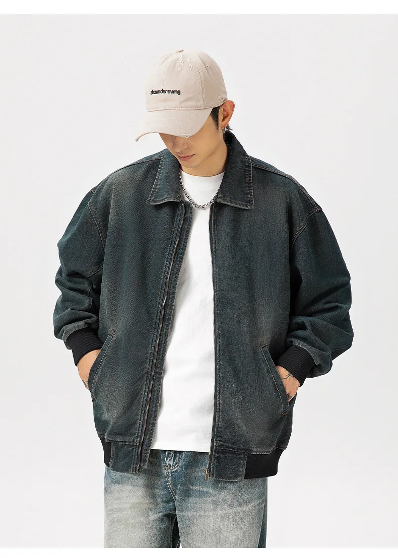 Threebooy Vintage vintage washed denim jacket for men's autumn new style functional loose fit flight staff jacket