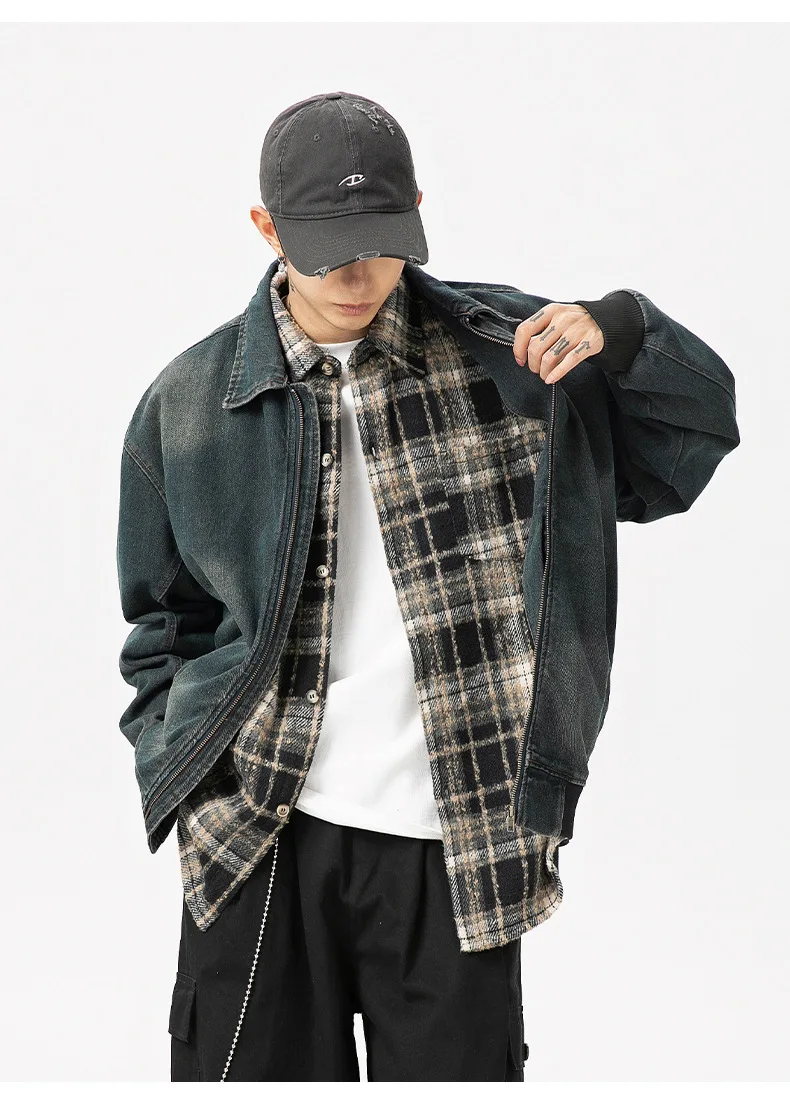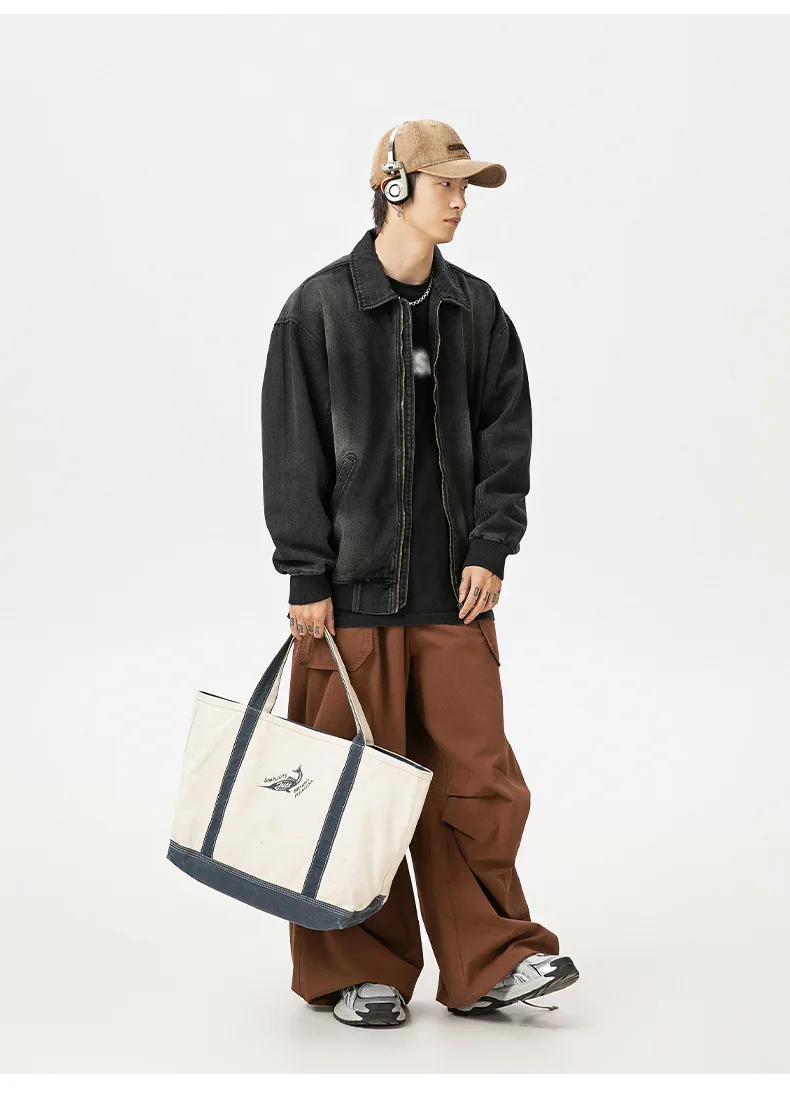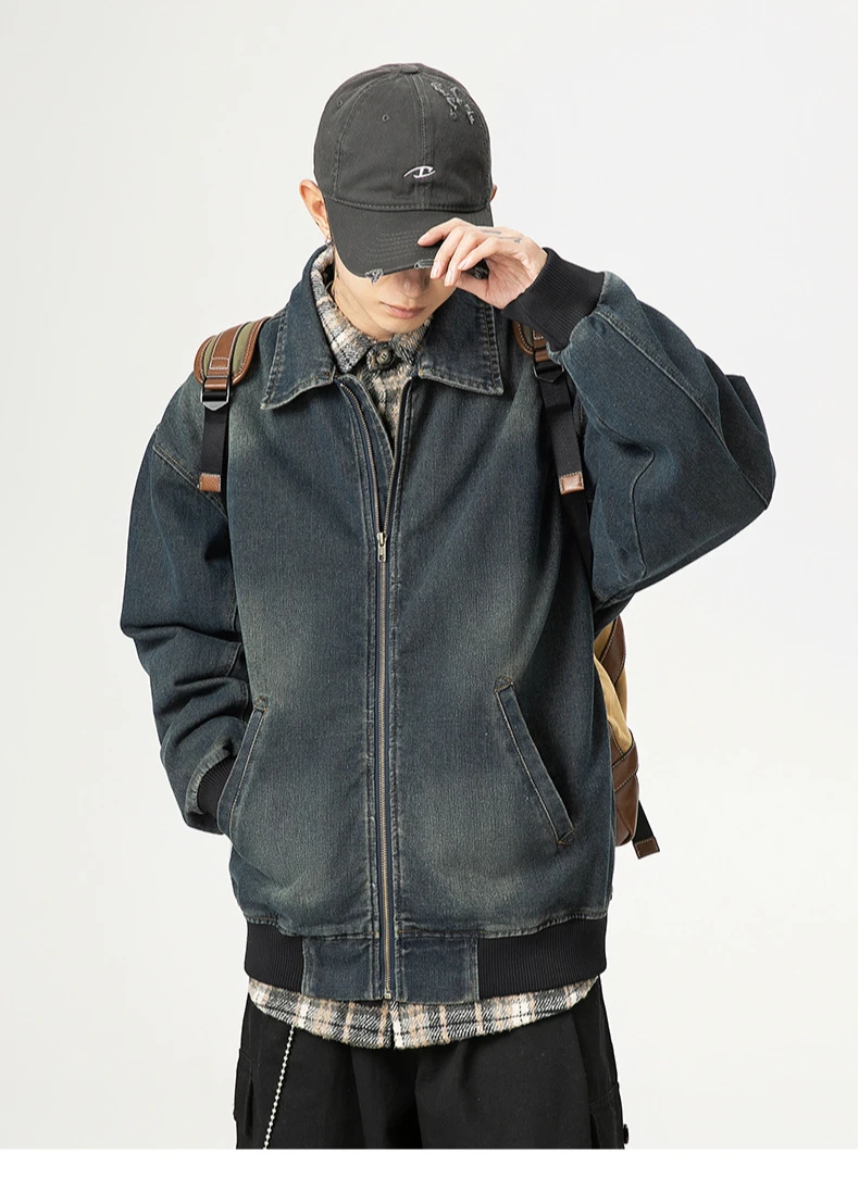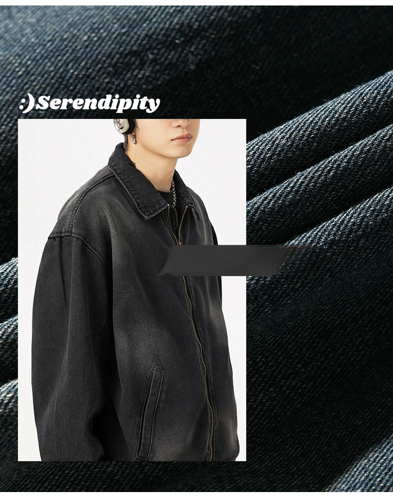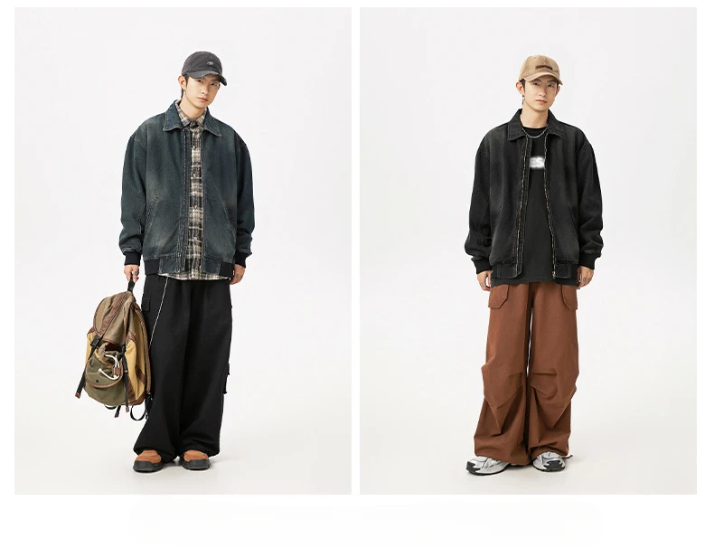 Threebooy Vintage vintage washed denim jacket for men's autumn new style functional loose fit flight staff jacket