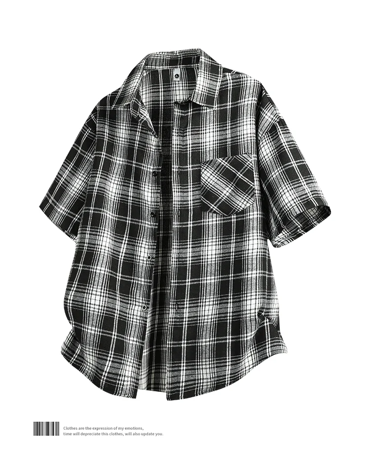 Threebooy White And Black Plaid Shirt Men Shirts 2025 New Summer Fashion Chemise Homme Mens Checkered Shirts Short Sleeve Shirt Men Blouse
