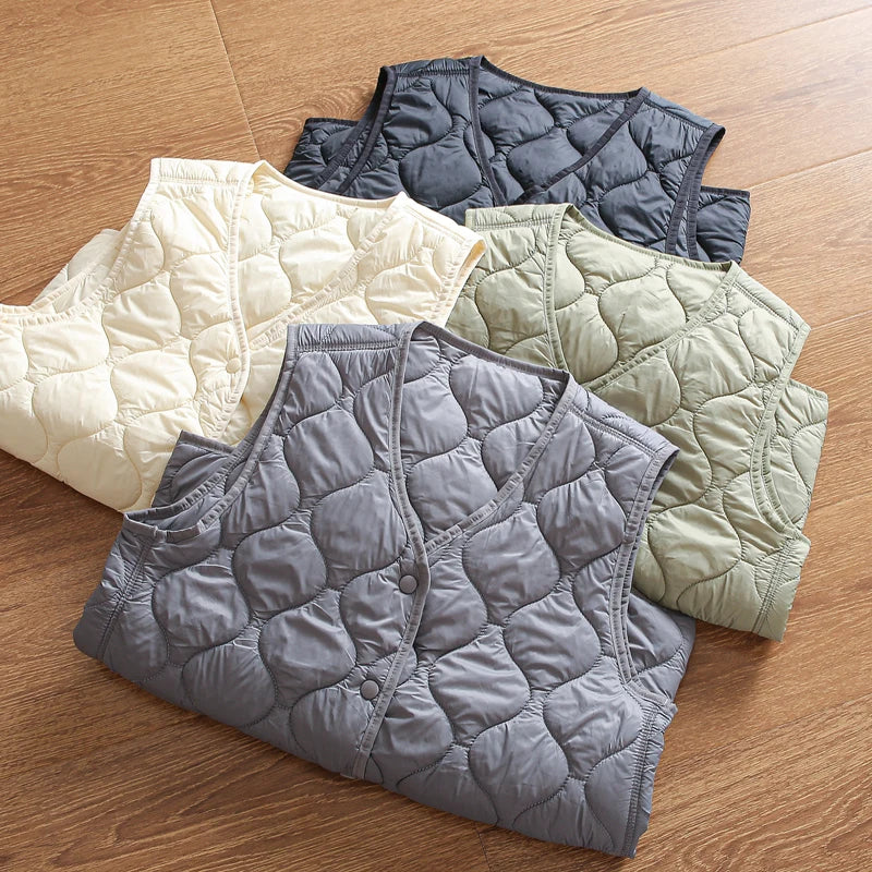 Threebooy Windproof Waterproof Autumn Padded Vest Inner Imitation Wool Quilted Cotton Fluffy Warm Lightweight V-neck Vest Cotton Waistcoat