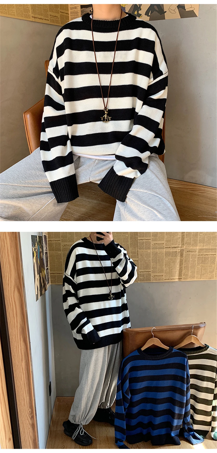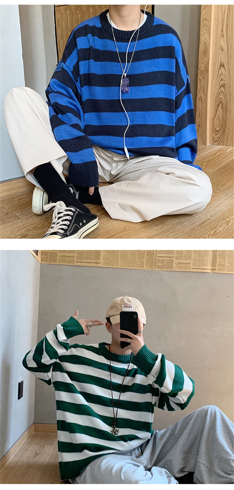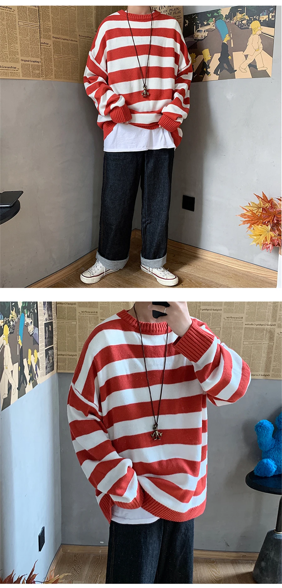 Threebooy Winter Knitted Sweater Men Striped Sweaters O-Neck Pullover Male Harajuku Oversized Sweaters Women Couple Hip Hop Jumper