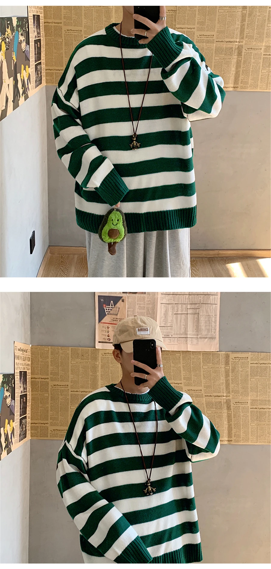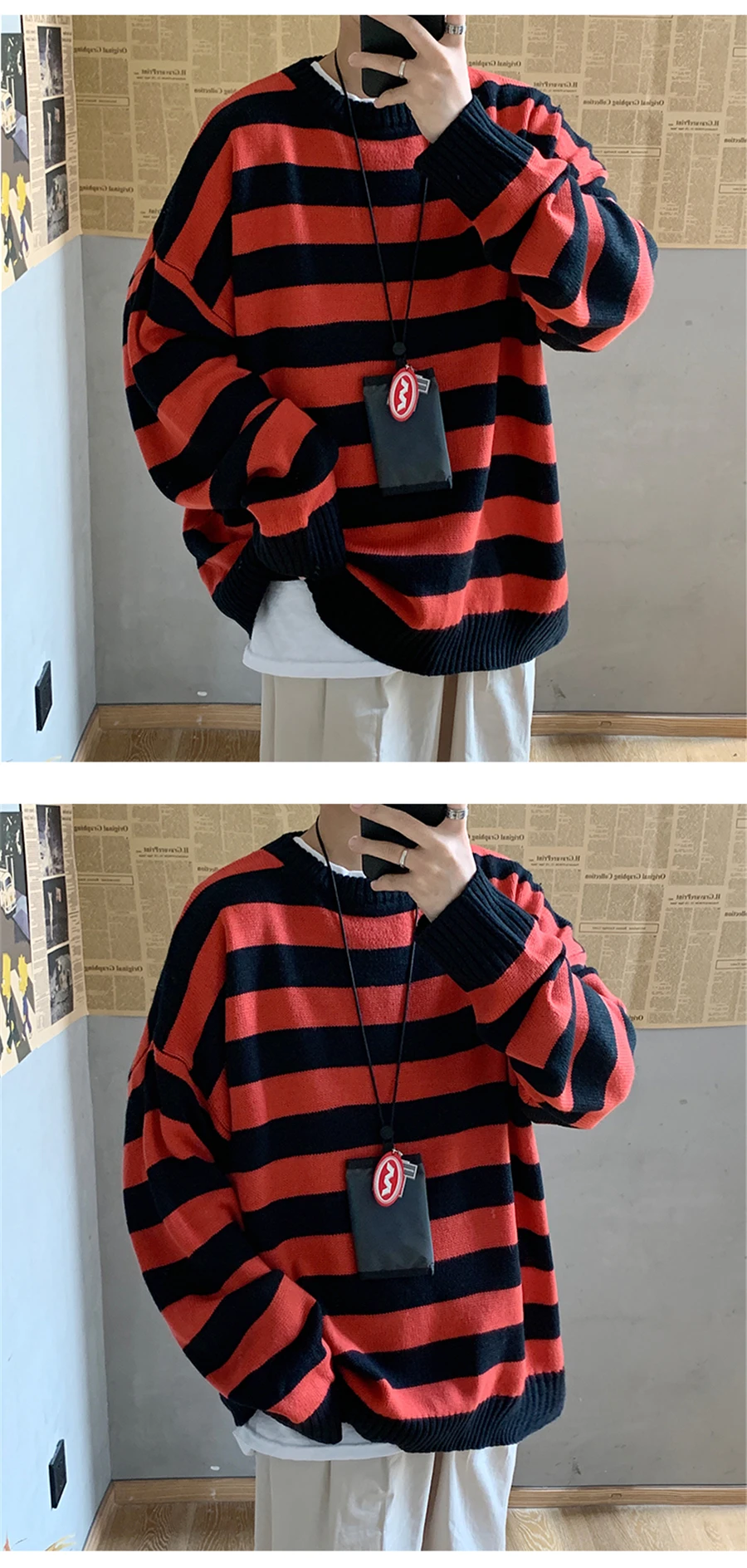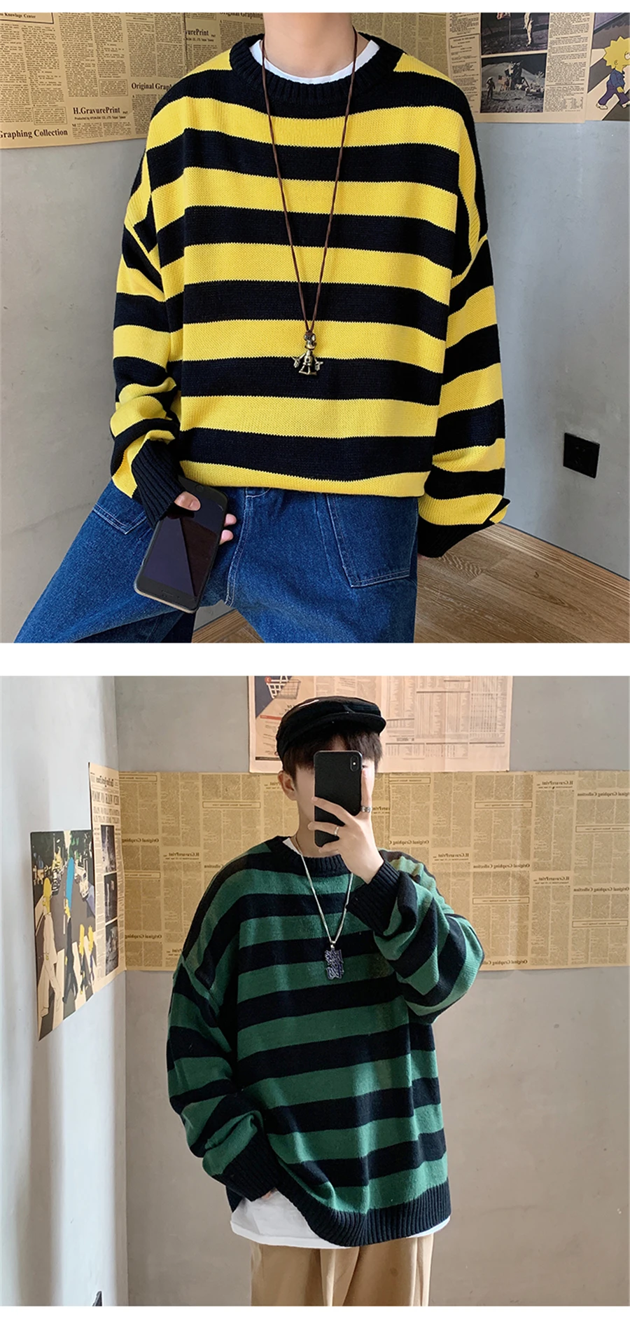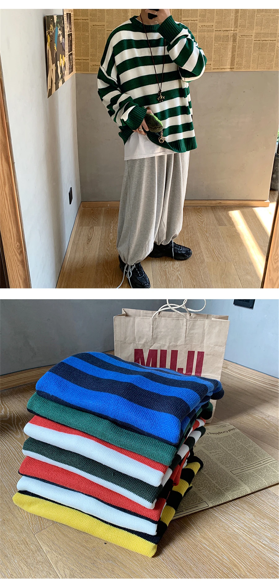 Threebooy Winter Knitted Sweater Men Striped Sweaters O-Neck Pullover Male Harajuku Oversized Sweaters Women Couple Hip Hop Jumper