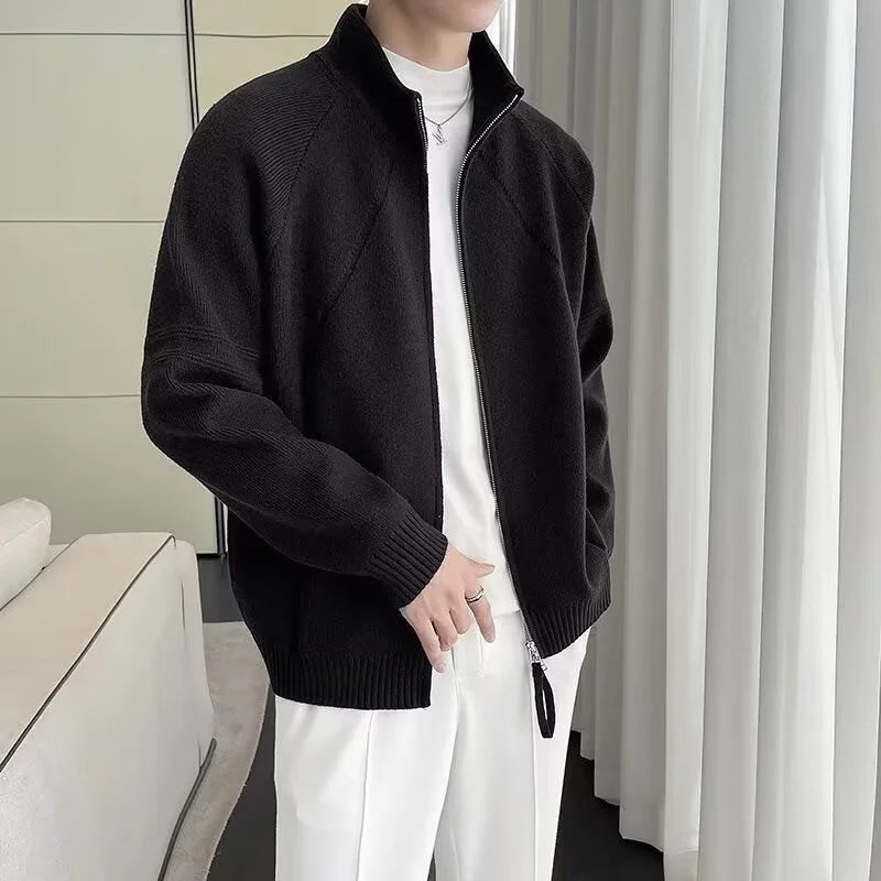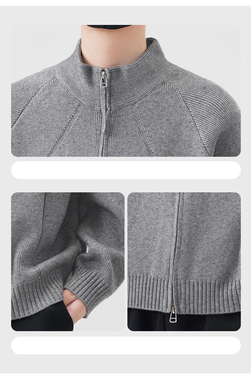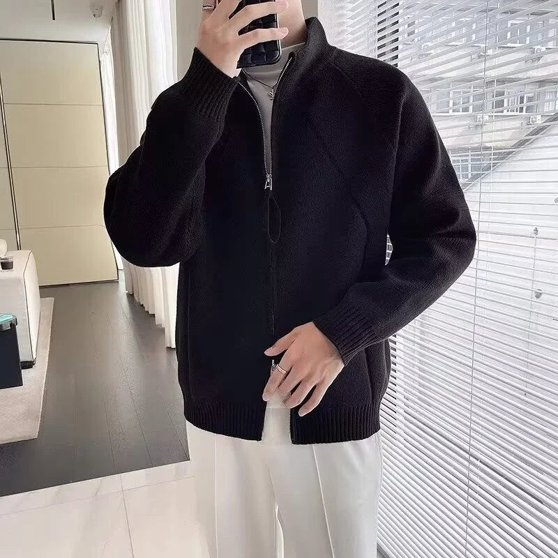 Threebooy Winter Korean Fashion Stand Collar Zipper Sweater Man Casual Loose Knitted Cardigan Streetwear Elegant Y2K Vintage Knit Jackets