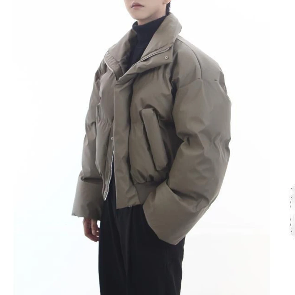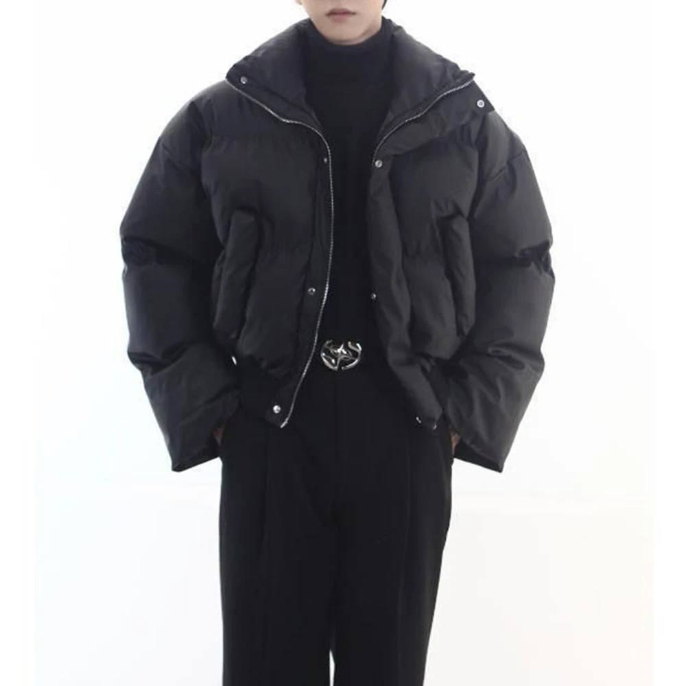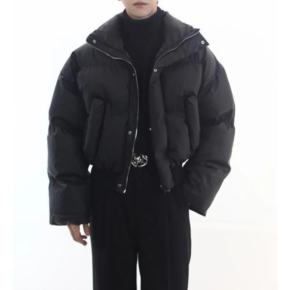 Threebooy Winter Street Fashion Warm Niche Design Y2k Coat Loose Casual Simple Solid Color Short Cotton Coat High Quality Jacket For Men