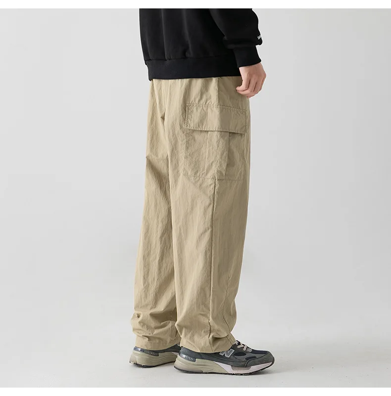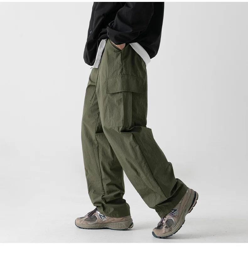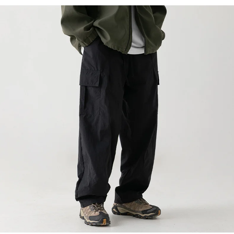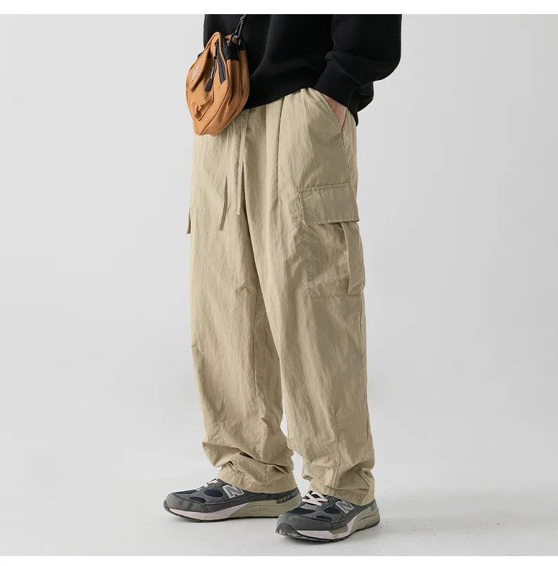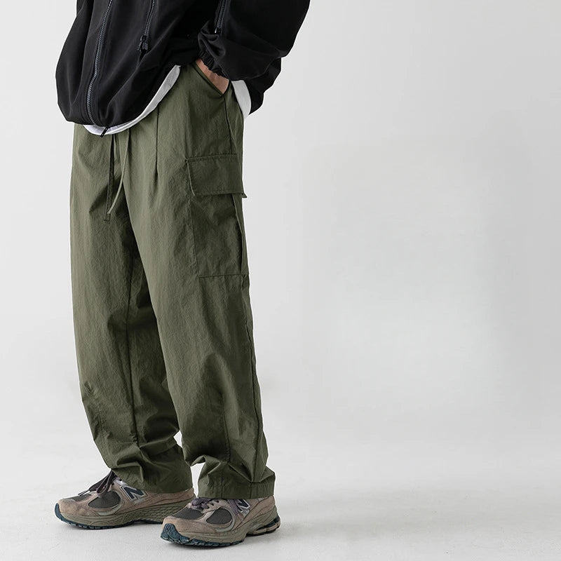 Threebooy Work pants men's autumn style Japanese outdoor loose pleated drawstring casual pants