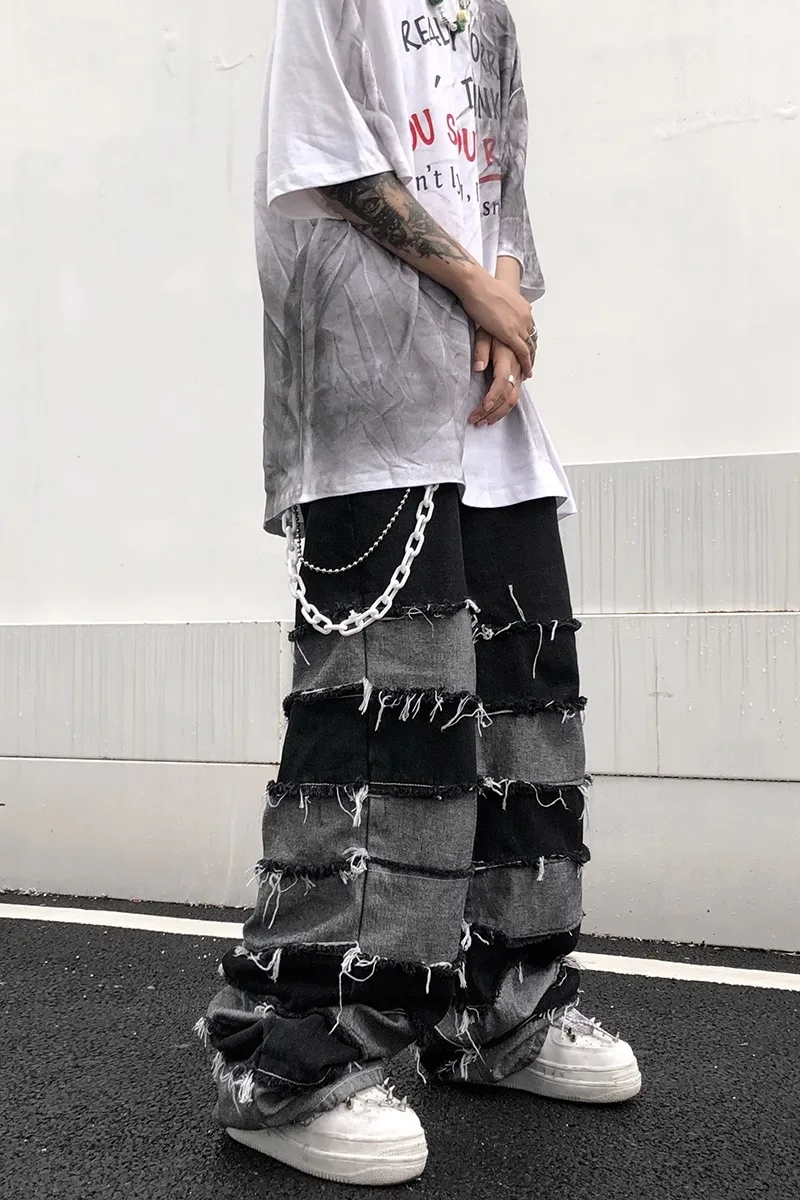 Threebooy Y2K Baggy Stacked Jeans Pants For Men Clothing Straight Vintage Grey Grunge Long Trousers Ropa Hombre