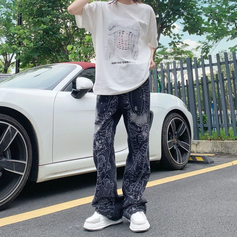 Threebooy Y2K Fashion Graphic Embroidery Baggy Jeans Pants For Men Clothing Straight Wide Leg Women Denim Trousers Pantalones Hombre