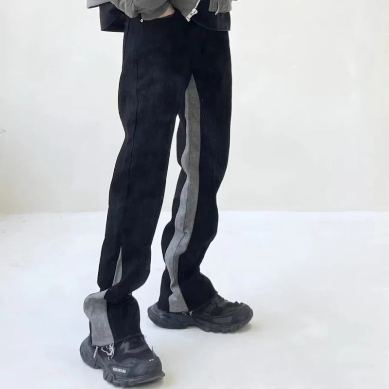 Threebooy Y2K Fashion Patchwork Black Baggy Flare Jeans Pants For Men Clothing Straight Women Casual Long Trousers Ropa Hombre
