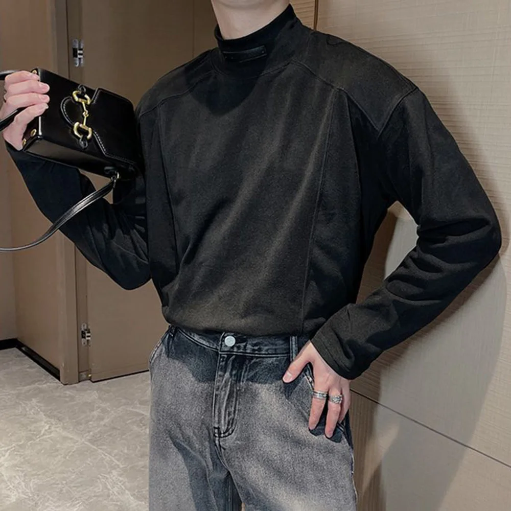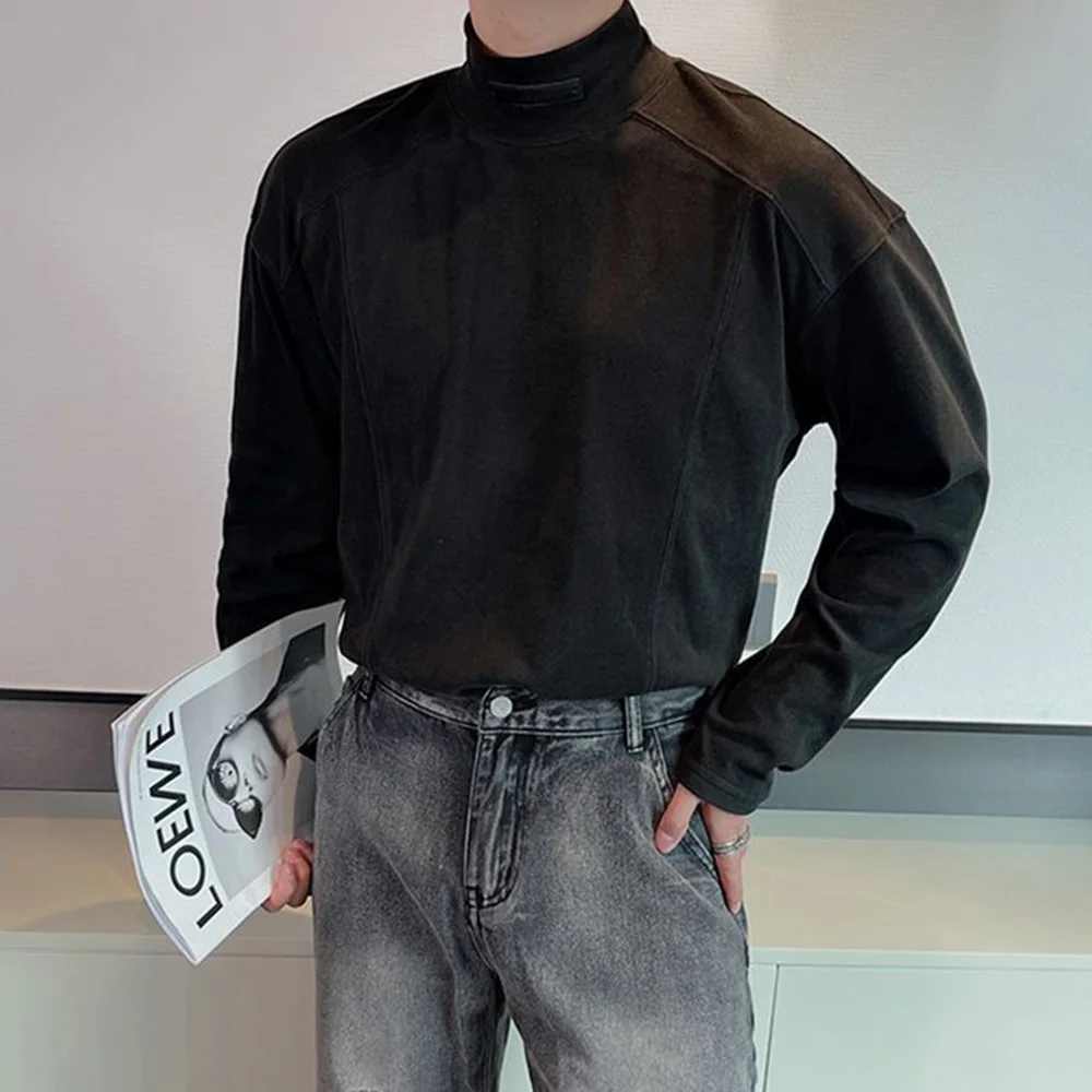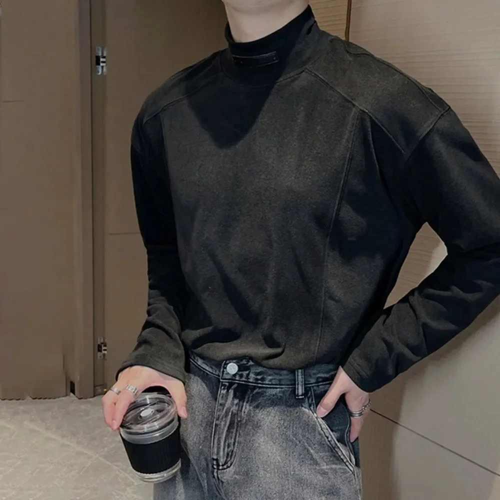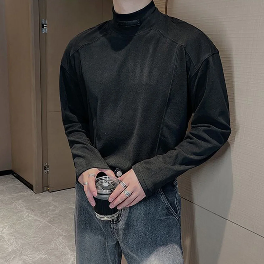 Threebooy Y2k Mens T-Shirt Casual Solid Color Bottom Layer Cedar Autumn Streetwear Simple Korean Version Top Men's Clothing Unisex