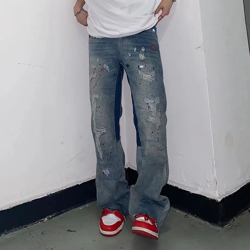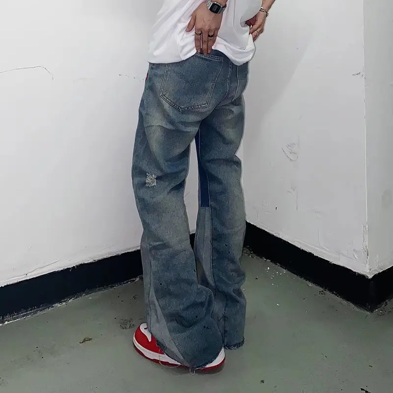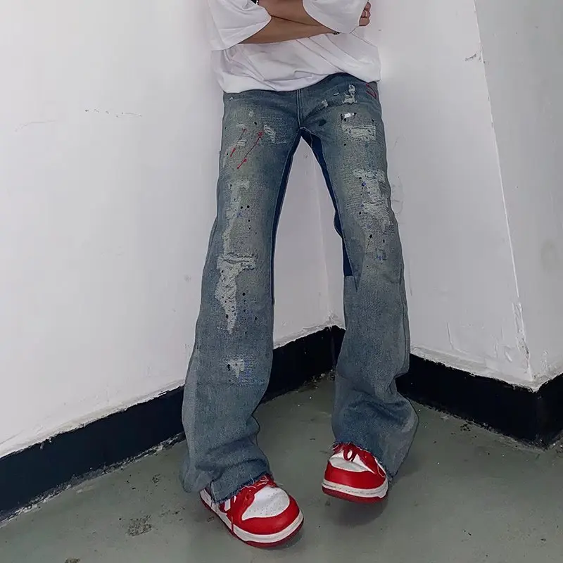 Threebooy Y2K Streetwear Baggy Ripped Jeans Pants Men Designer Clothes Washed Blue Straight Hip Hop Denim Trousers Ropa Hombre