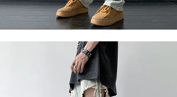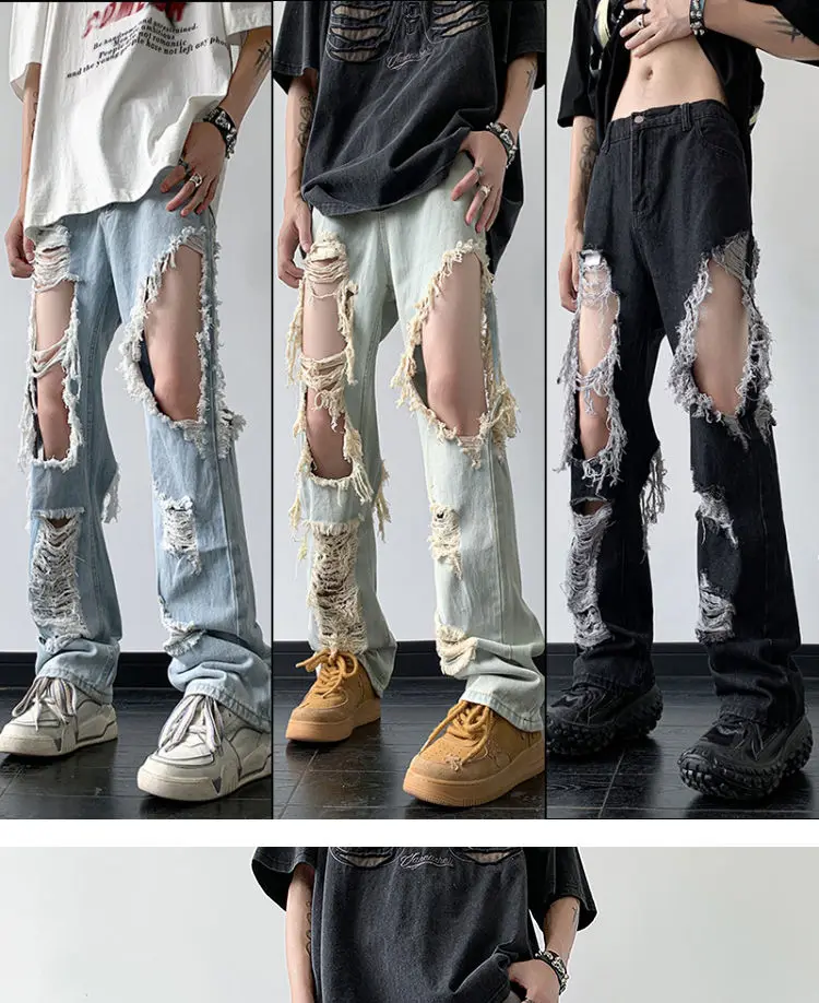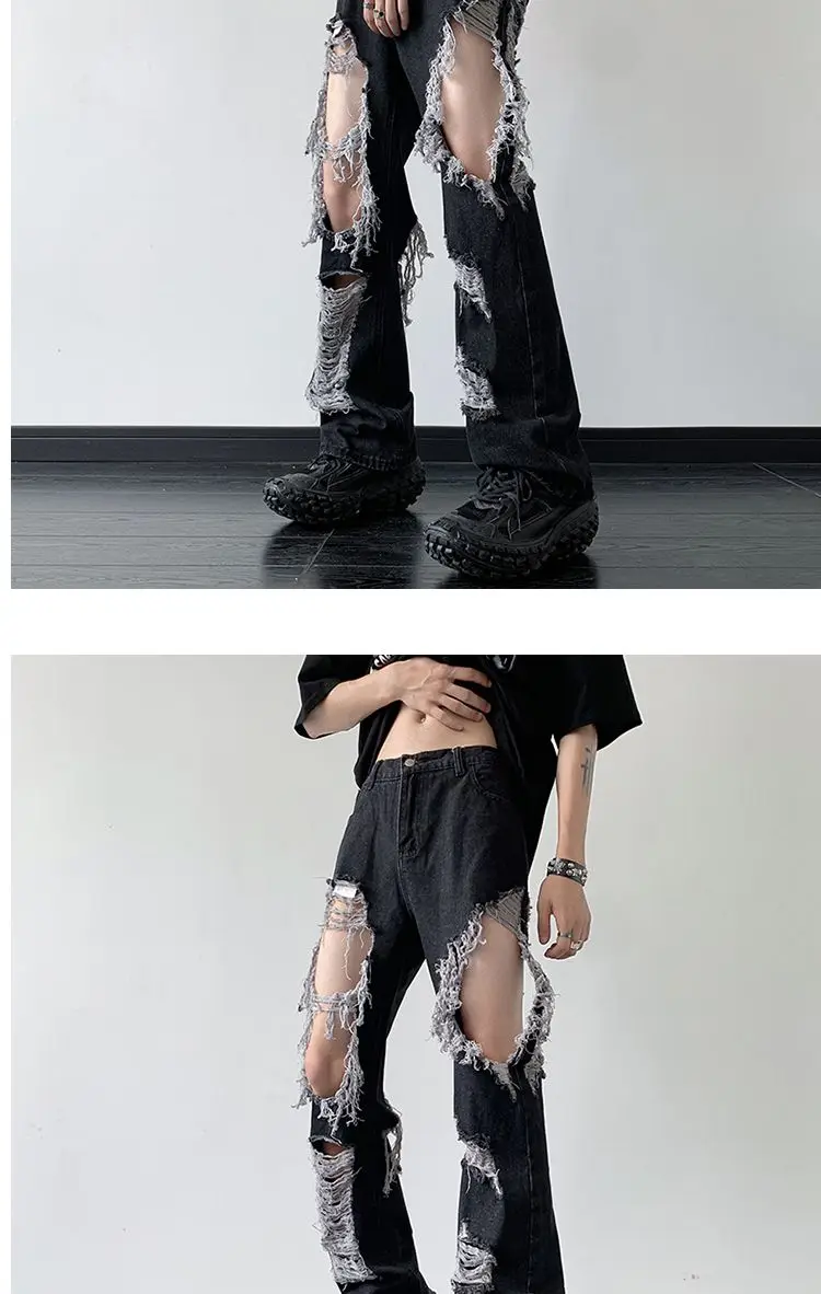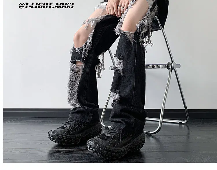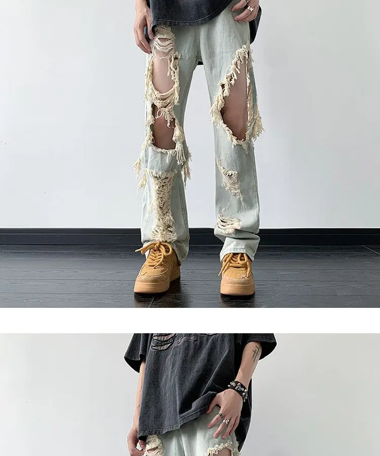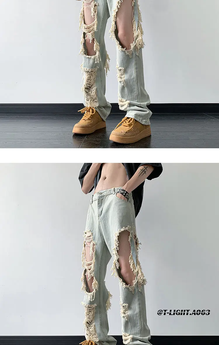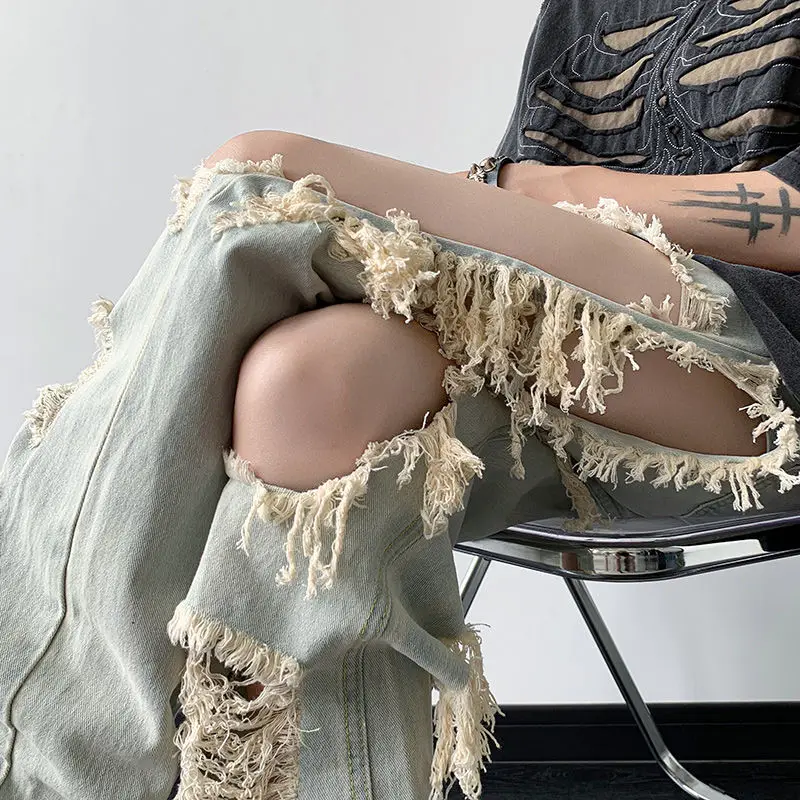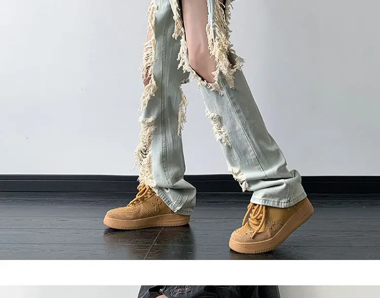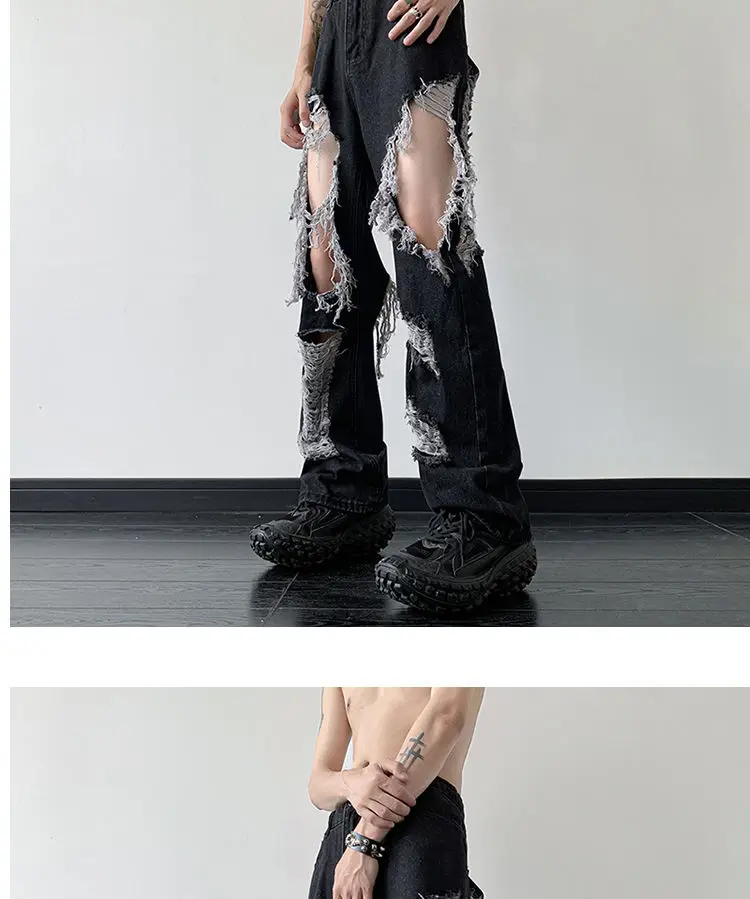 Threebooy Y2K Tassel Ripped Jeans Men High Street Beggars Pants